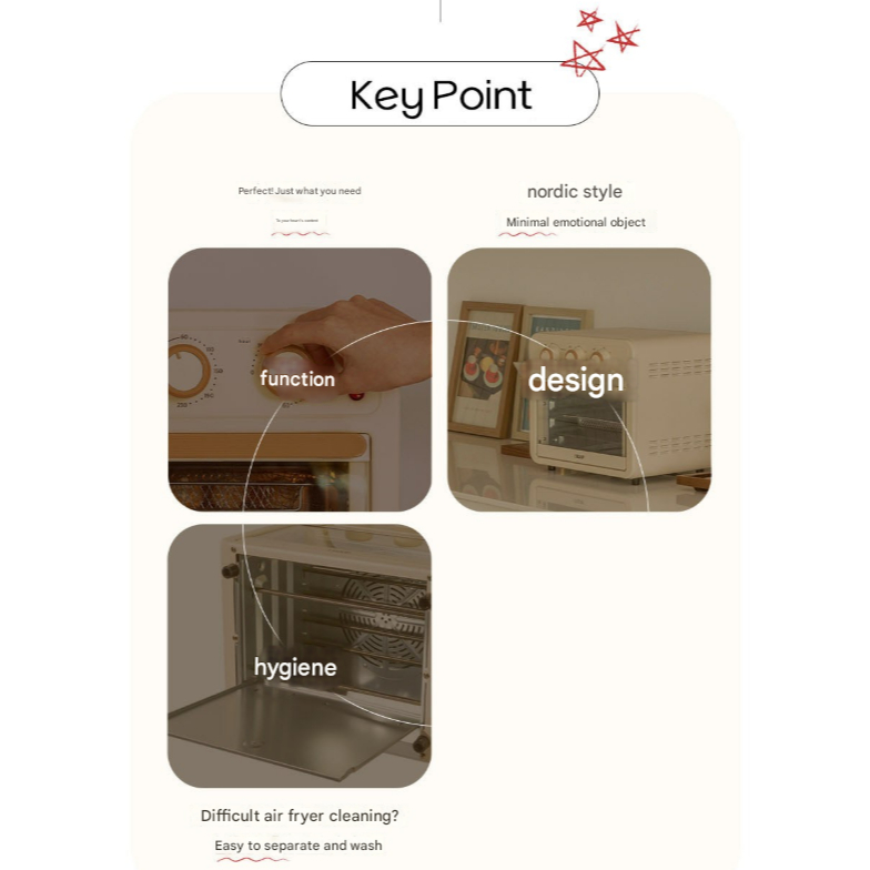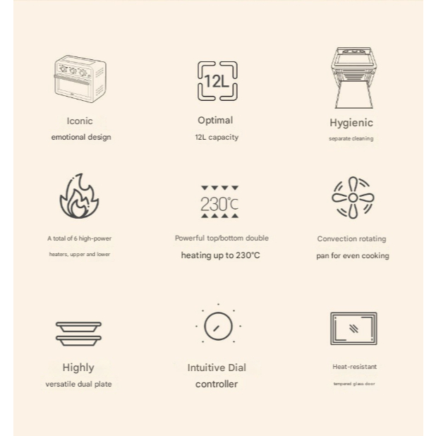 LEQUIP Mini Air Fryer Oven 12L LAF-MO1208CM Double Heating Household Small DualPlate HygienicCleaning