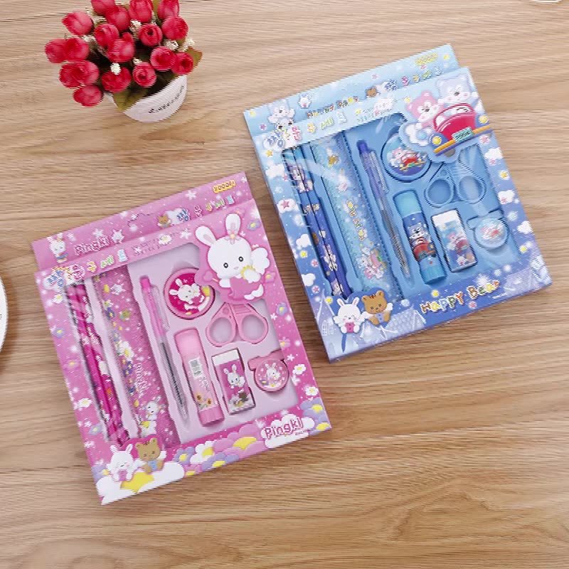 Kids Christmas Gift Student 9 in 1 Stationary Set Ideas Gift 9pcs/set Cartoon Stationary with Pencil