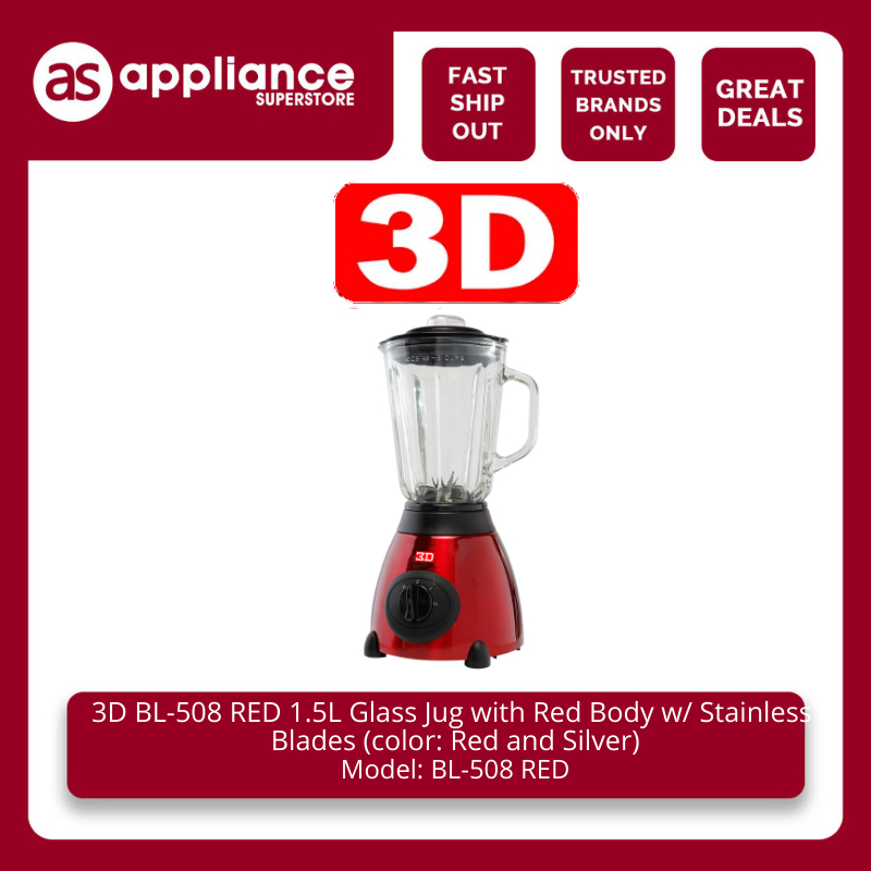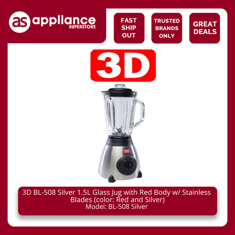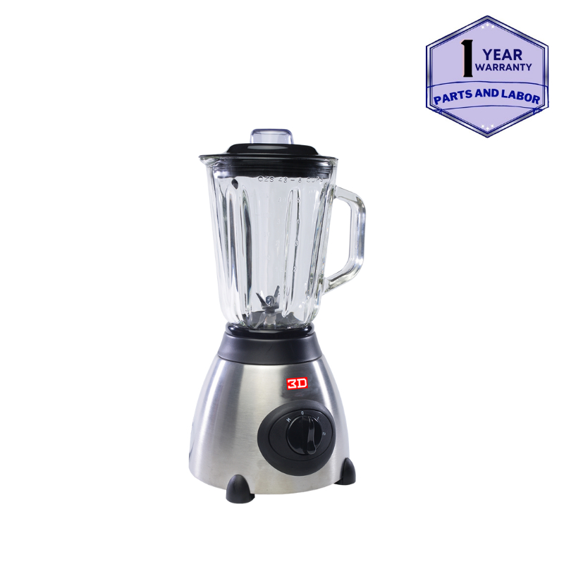 3D BL-508 1.5L Glass Jug with Stainless Steel Base w/ Stainless Steel Blades blender