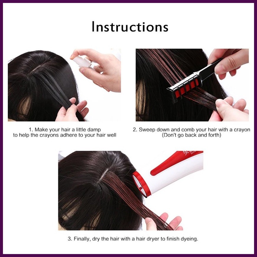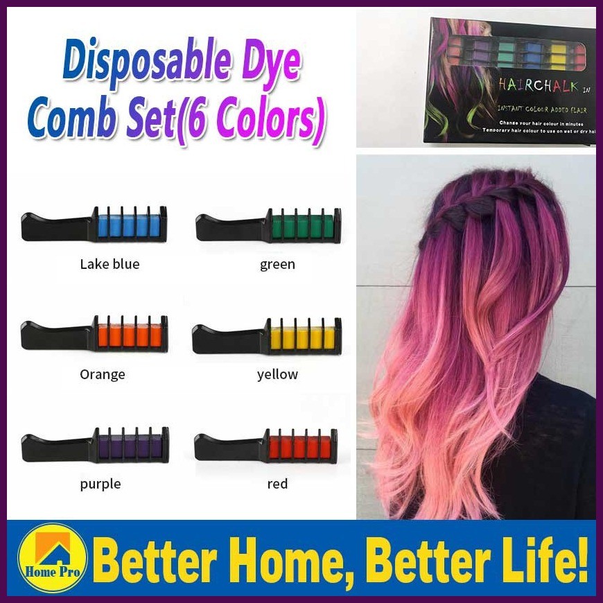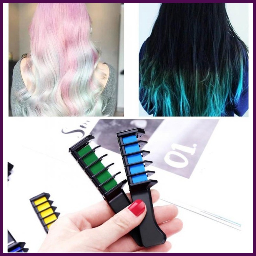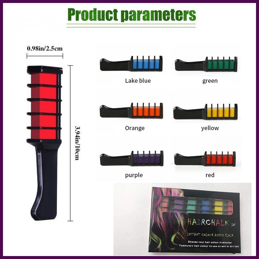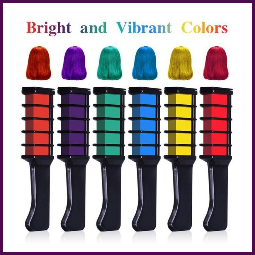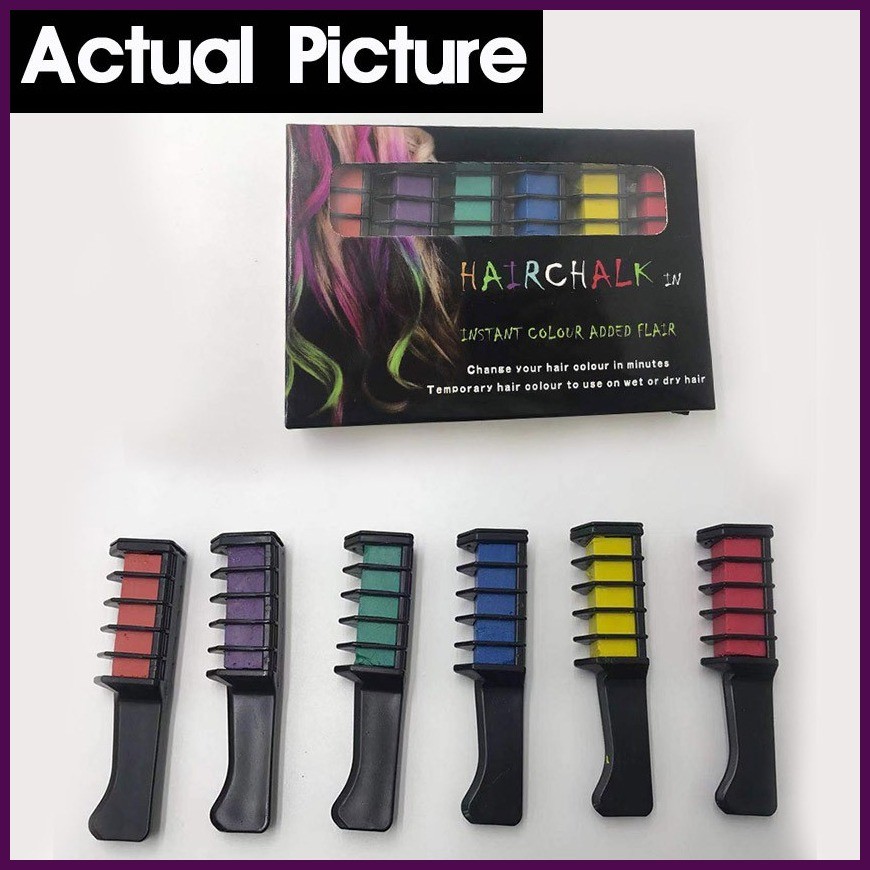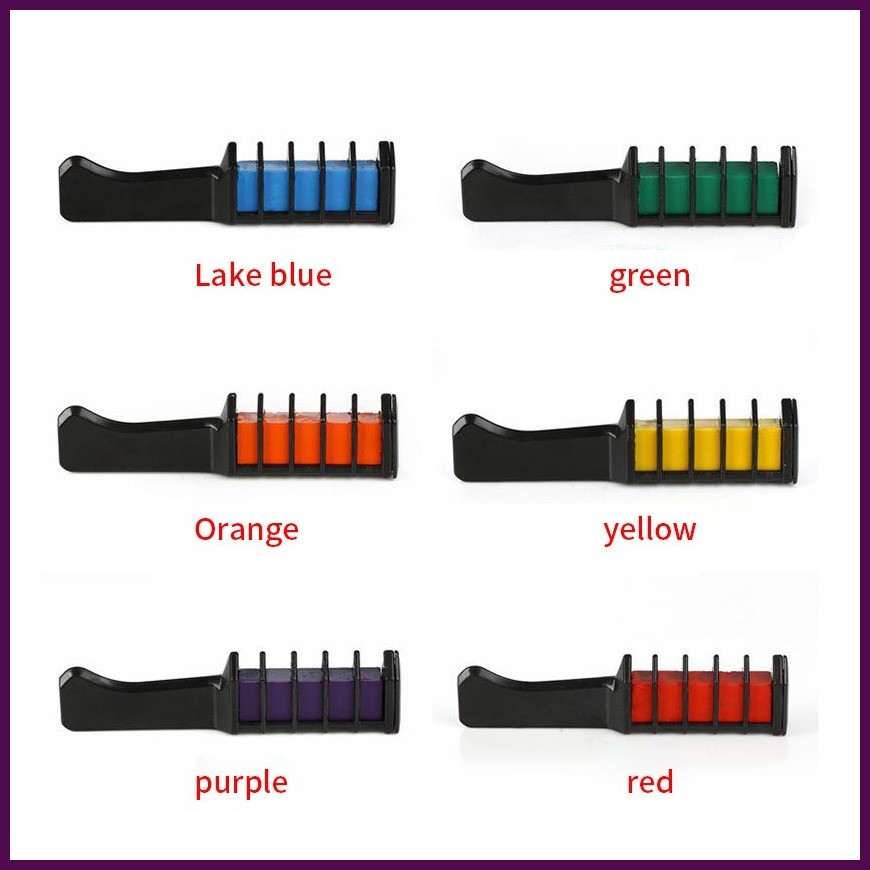 ┬ ∼ ✼ Disposable Hair Color Chalk Combs Kit 6 PCS Fashion Colorful Girls Party Cosplay Washable Set