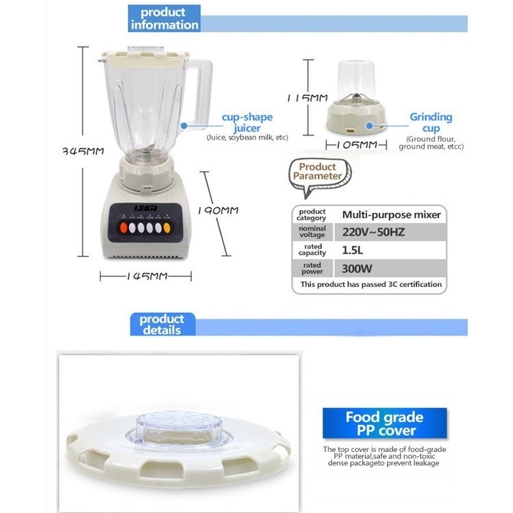 Lear 3 In 1 Blender For Shake Mini Juicer Machine 1.5l Heavy Duty Blender For Fruits And Vegetables