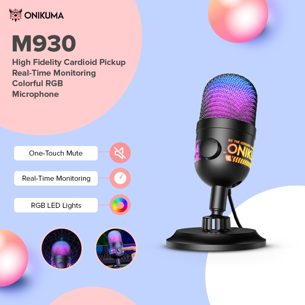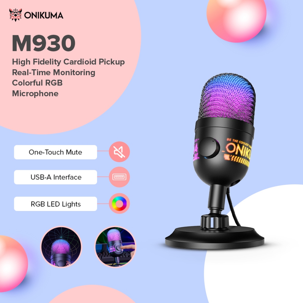 Onikuma M930 Colorful RGB USB Microphone with One Click Mute Button Desktop Mic Wired Mic