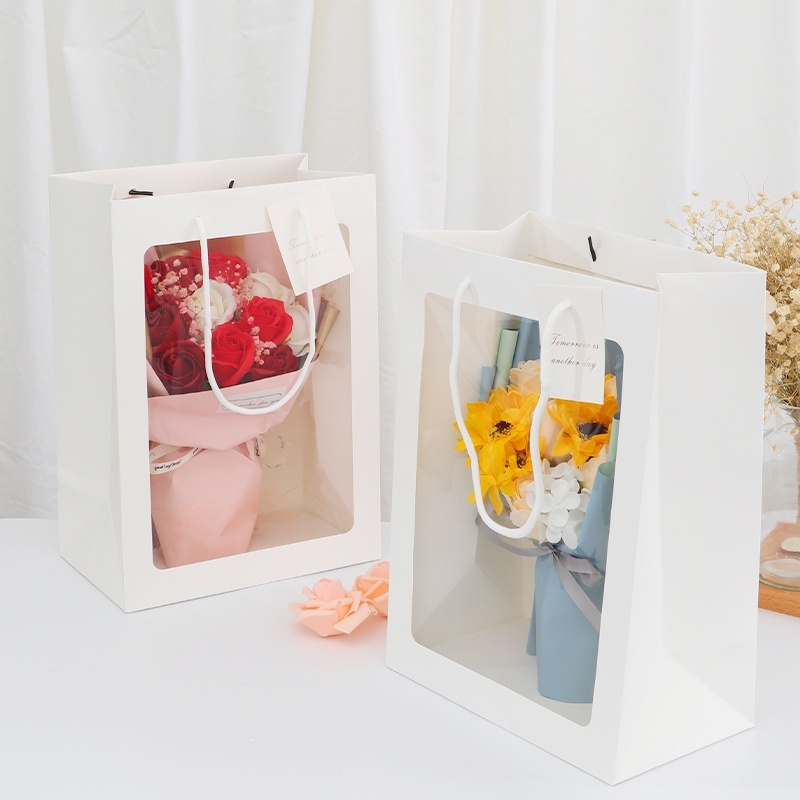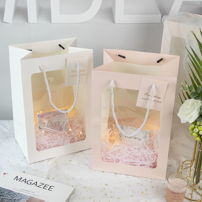 Paper Bag Clear Window Gift Bags for Stuff Toys Flower Bag Gift Packaging birthday gift packagingbag