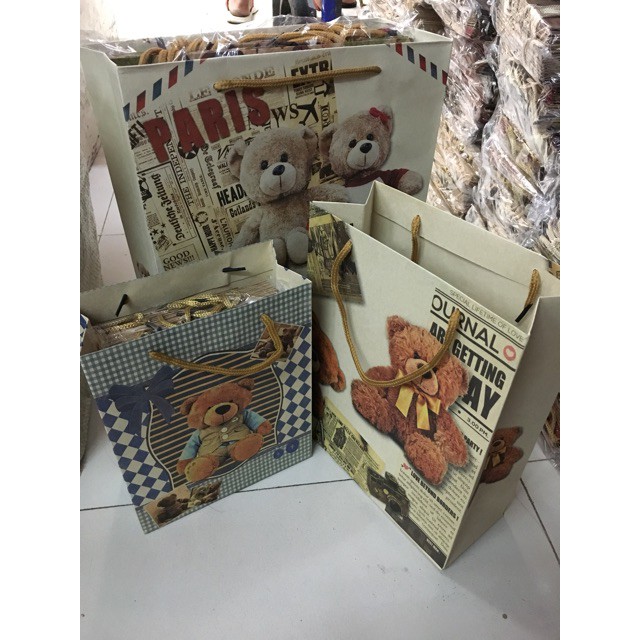 Paper Bag Teddy bear design Hand bag Gift bag Paperbag Random pattern