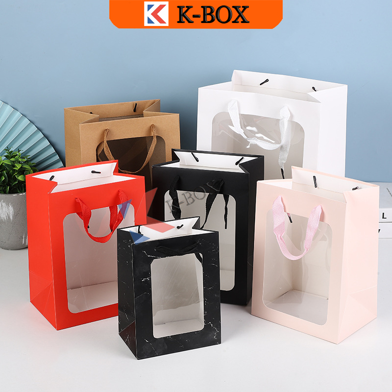 Paper Bag Window Clear Window Gift Bags for Stuff Toys Flower Bag Gift Packaging K BOX