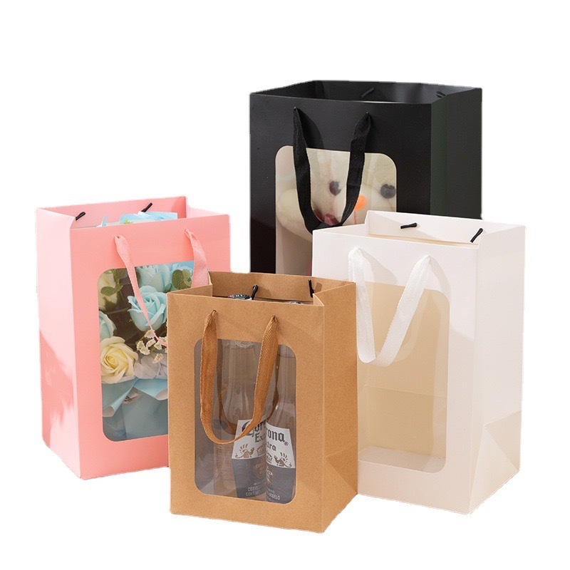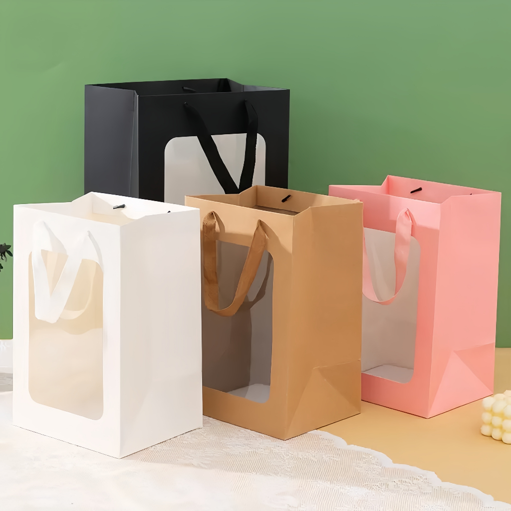 Paper Bag Window Clear Window Gift Bags for Stuff Toys Flower Bag Gift Packaging
