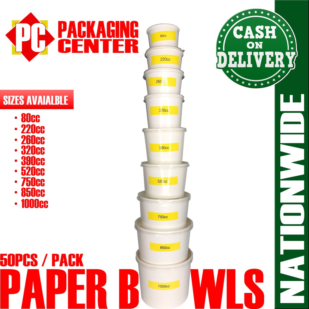Paper Bowl All Sizes by 50pcs per pack,PC Packaging Store