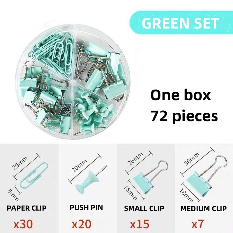 Paper Clip/Pushpin/Binder 72PCS Clip Set Multifunctional Document Folder Suit School Office Supplies