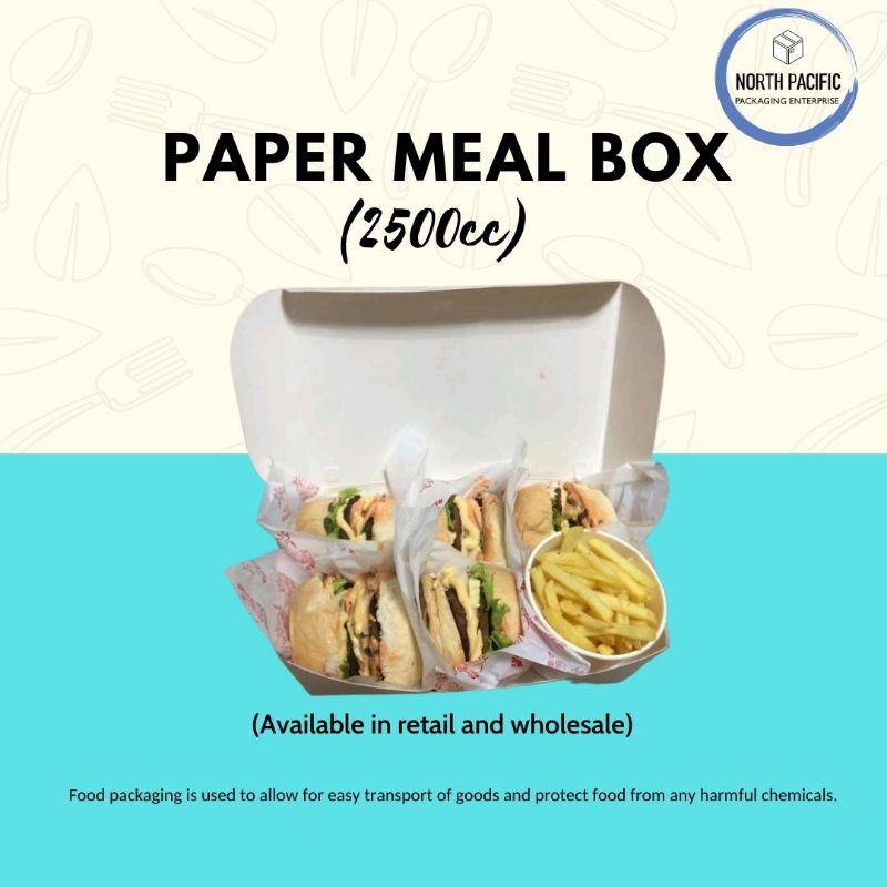 Paper Meal Box - 2500CC (Laminated White/ Brown-Silver) (25PCS)