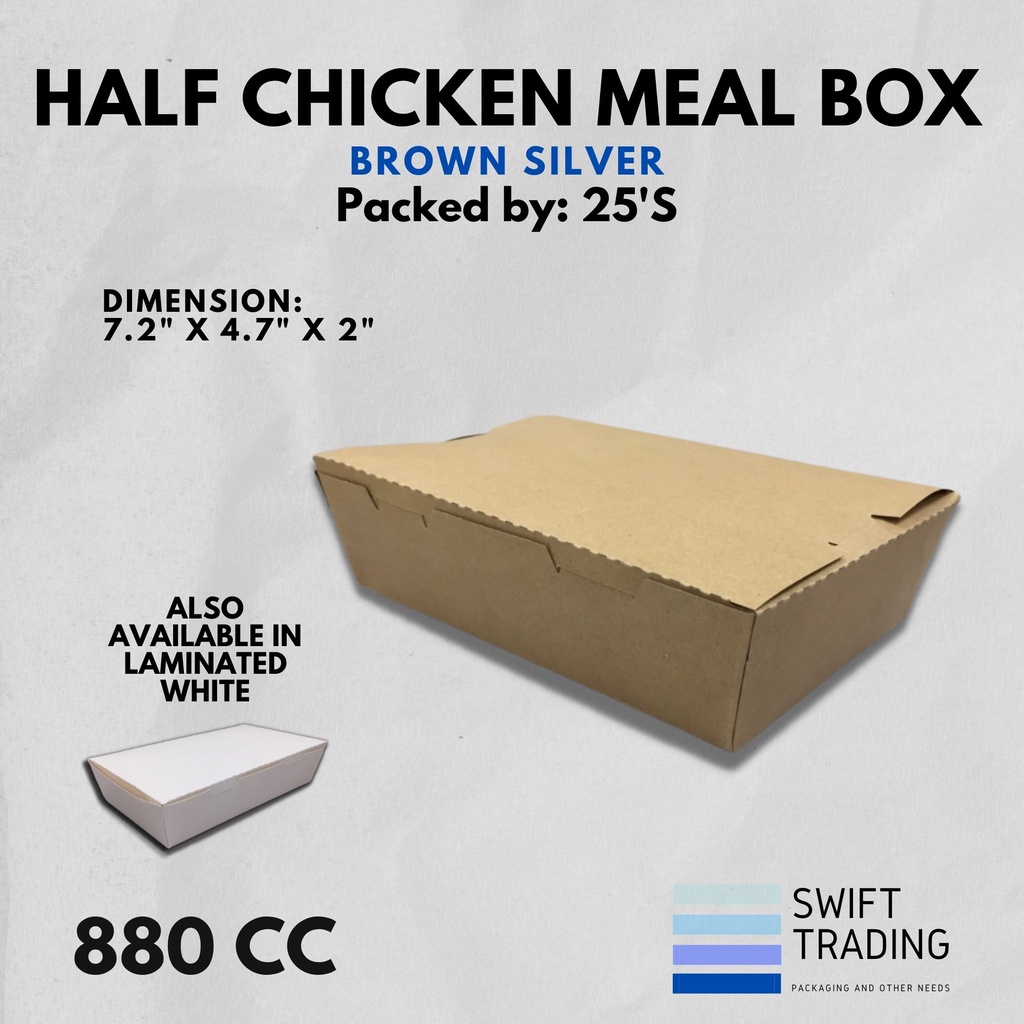 Paper Meal Box/ Takeout Box 880cc Chicken Meal Box Lunch Box (White /Brown) 25pcs/pack
