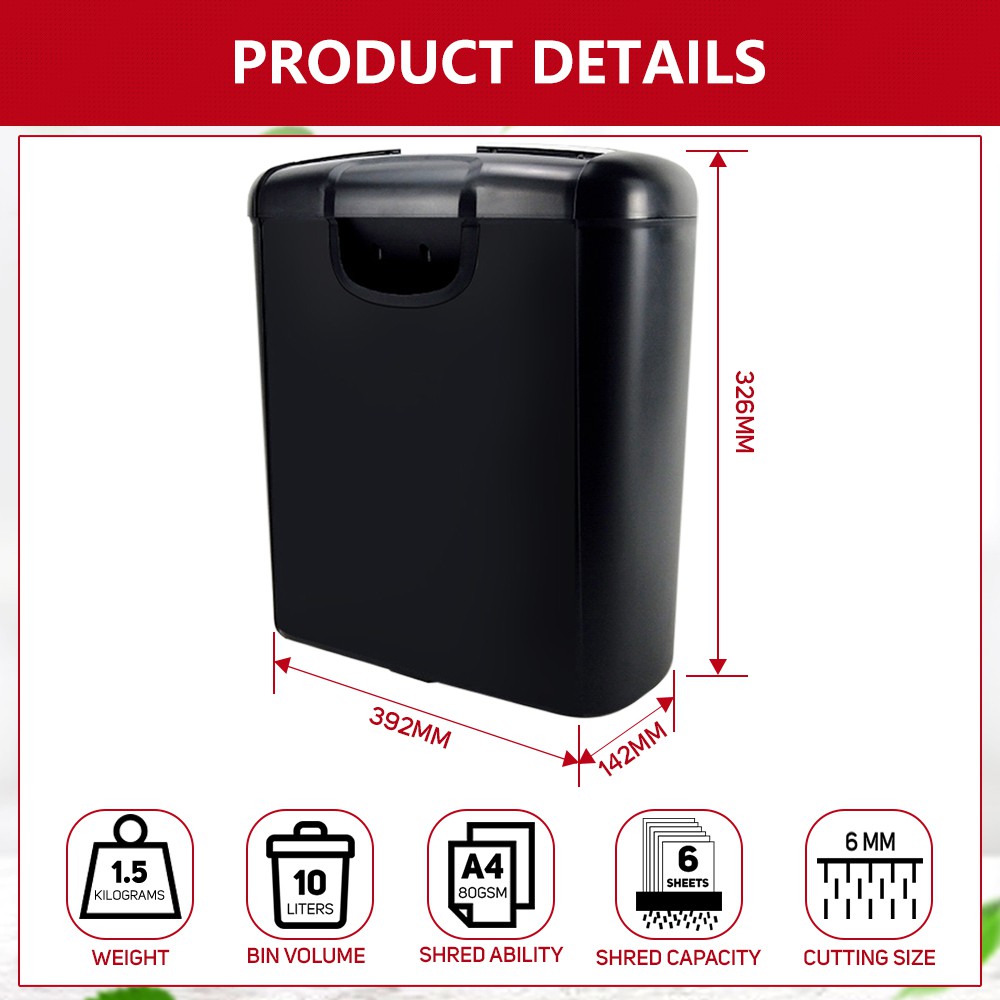 Paper Shredder Machine Black 10L (STRIP CUT) 220VOLTZ
