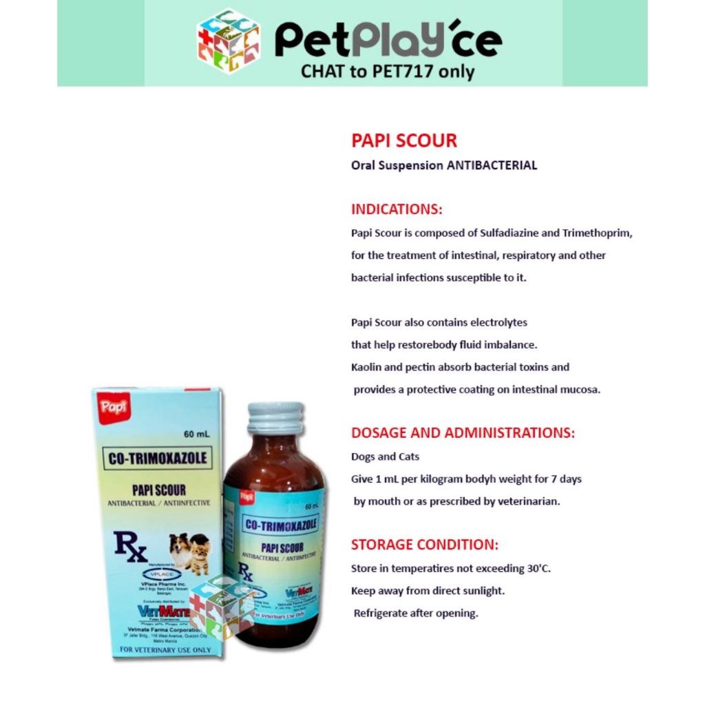 Papi Scour Oral Suspension 60ml Dog Cat Anti Diarrhea / Anti Bacterial Liquid Meds