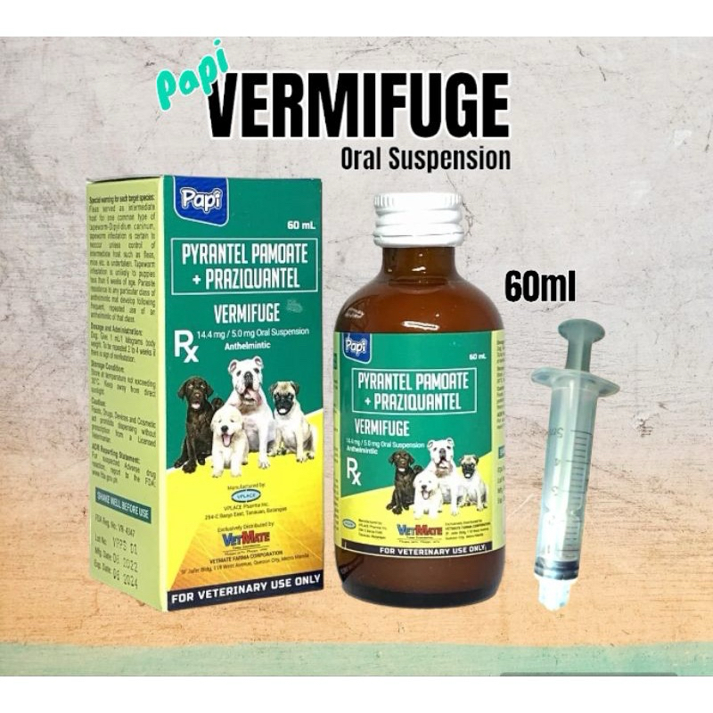 Papi Vermifuge Suspension Syrup 60ml for Dogs