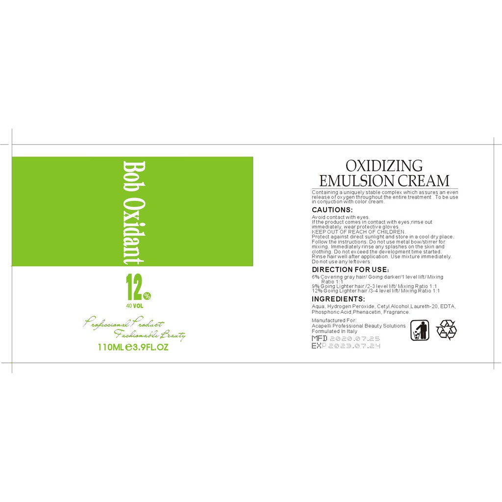 Bob Keratin Oxidizing Solution Oxidizer Oxidant Peroxide Oxi Oxidizer 100ml