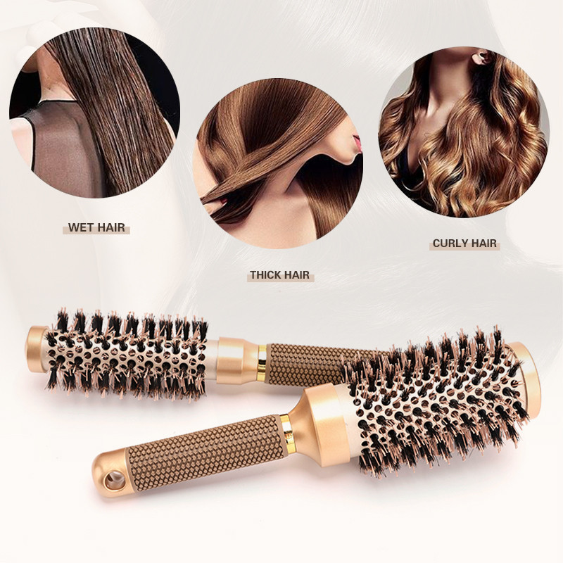 1Pc Curling Comb Thermal Ceramic Ionic Round Roller Hair Brush with Bristle Salon With Dryer Blower