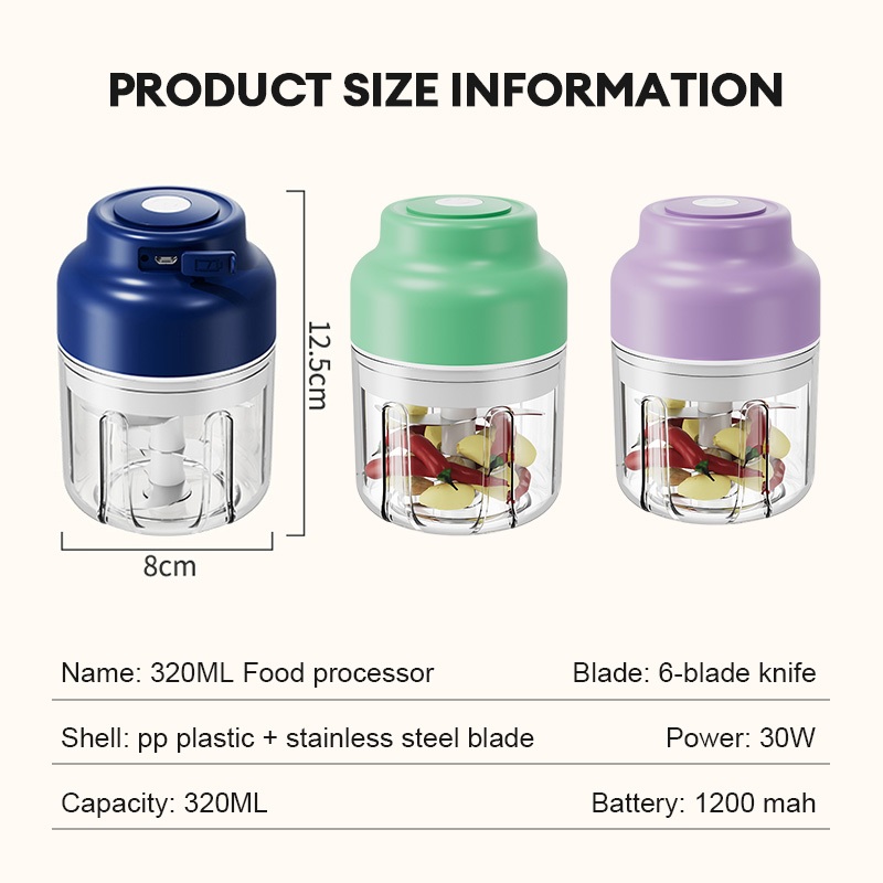 320ML Electric Food Chopper 6 Blades Garlic Chopper Kitchen Blender Mixer Vegetable Meat Chilli Chopper Food Processor