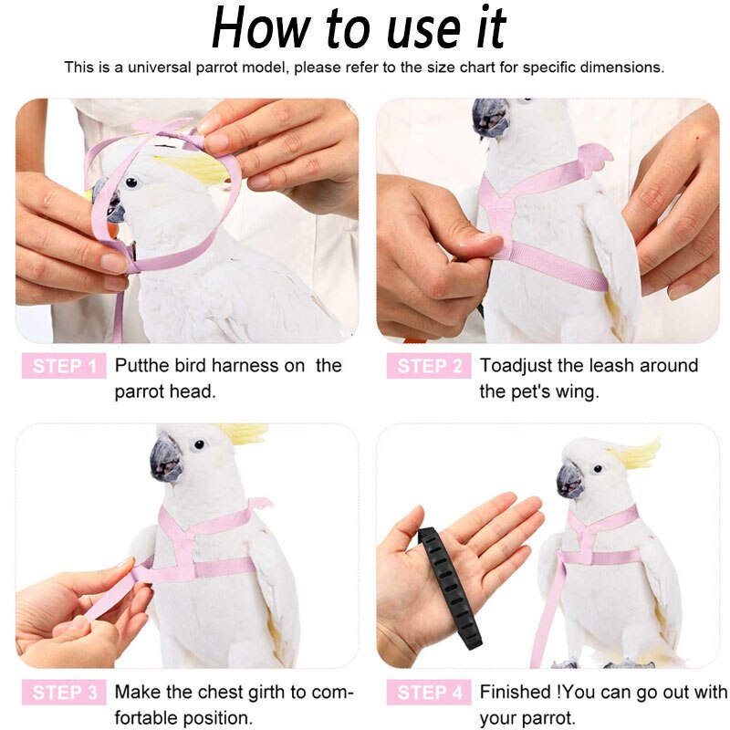 Parrot Harness Leash Anti-bite Flying Training Ropes For Birds Cockatiel Macaw Budgie Outdoor Adjustable Bird Harness Leash Set