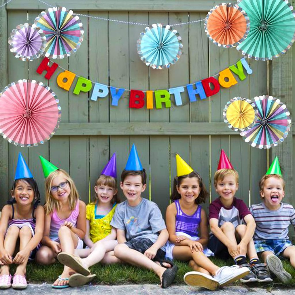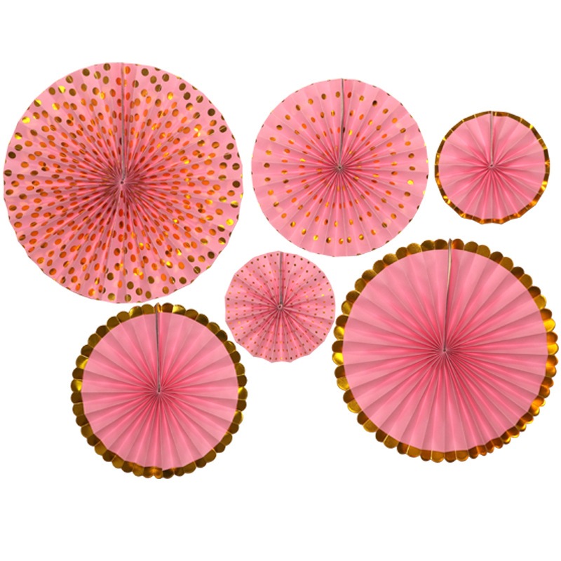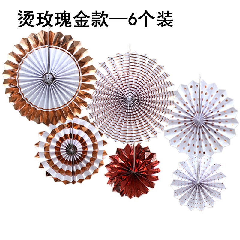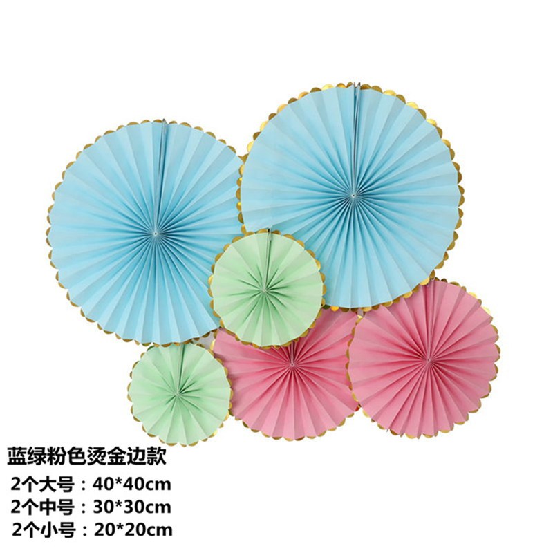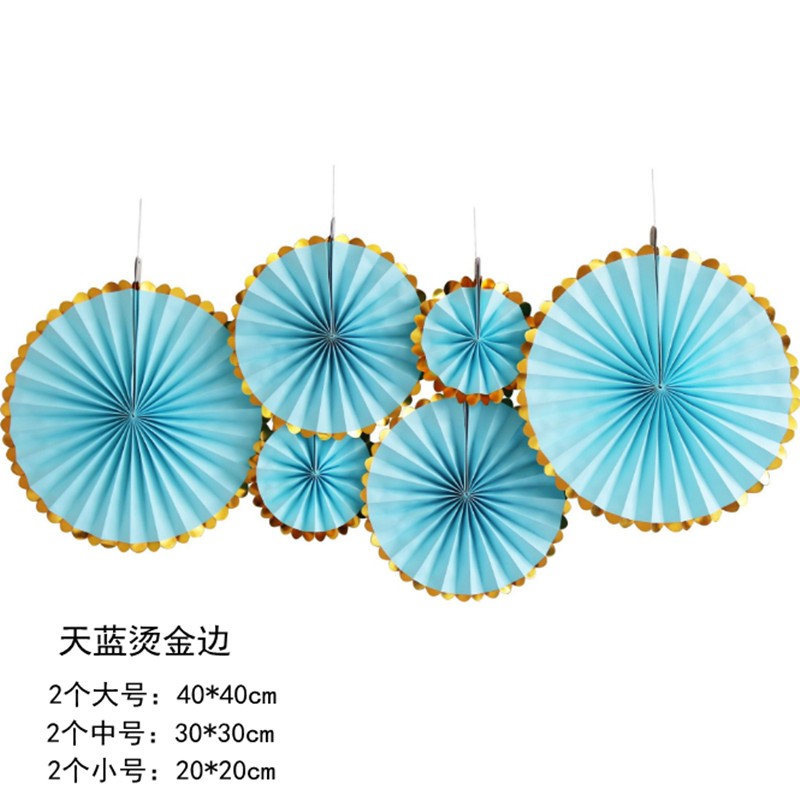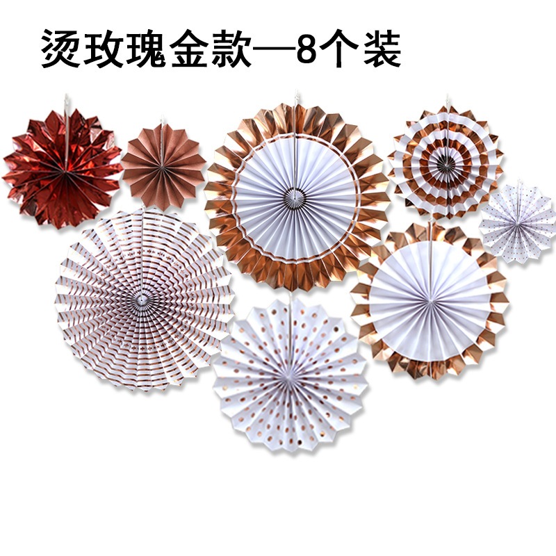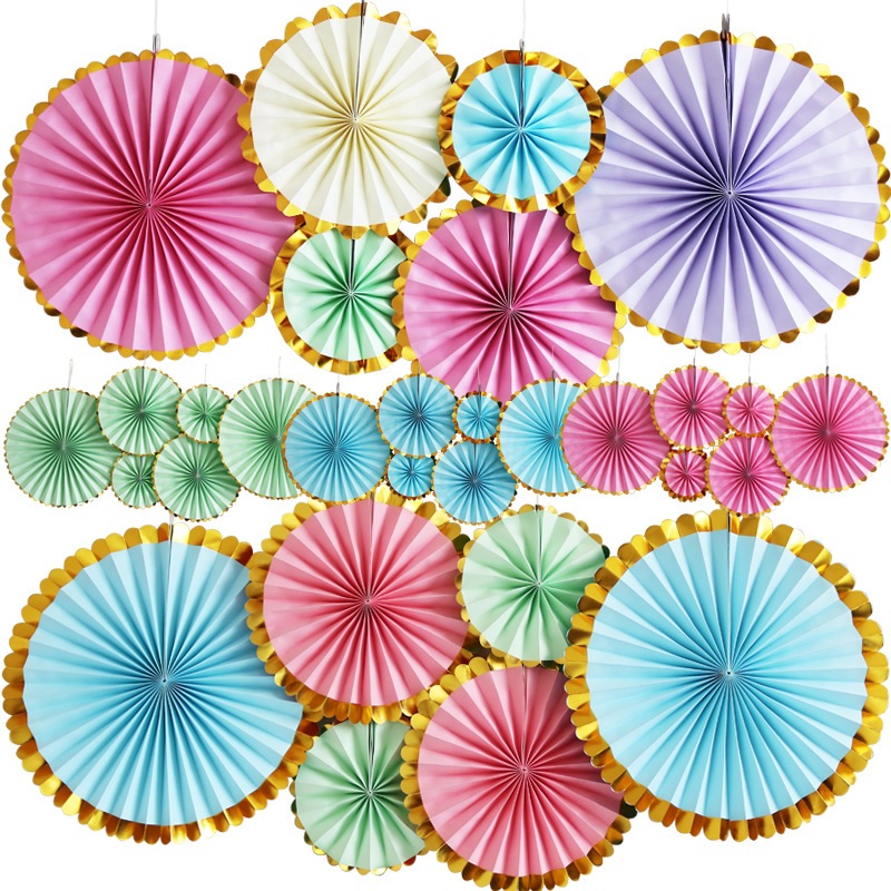 Party Hanging Paper Fans Set Round Flowers Fans Banner Hanging Paper Fan Hot Stamping Gold Side Paper Garland Decor Birthday Wedding Baby Shower Xmas Halloween Classroom Wall Decor