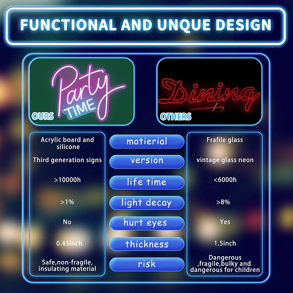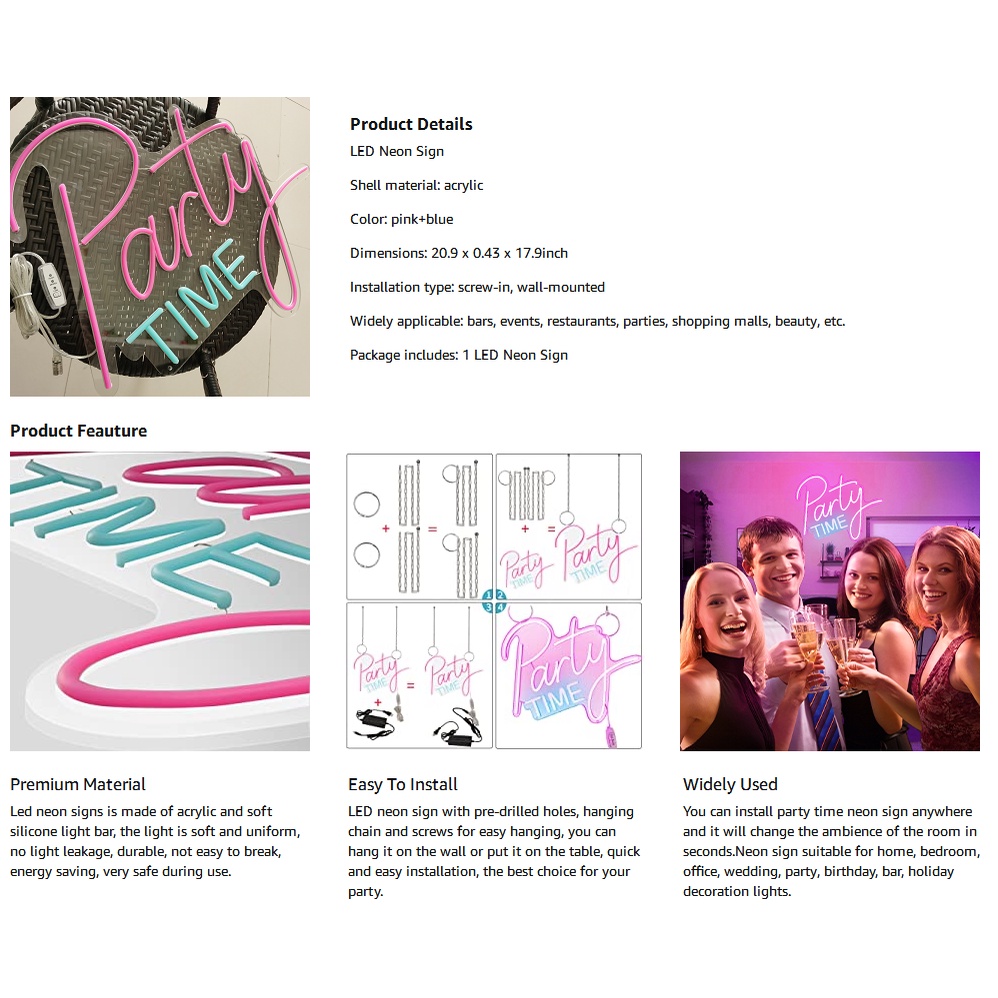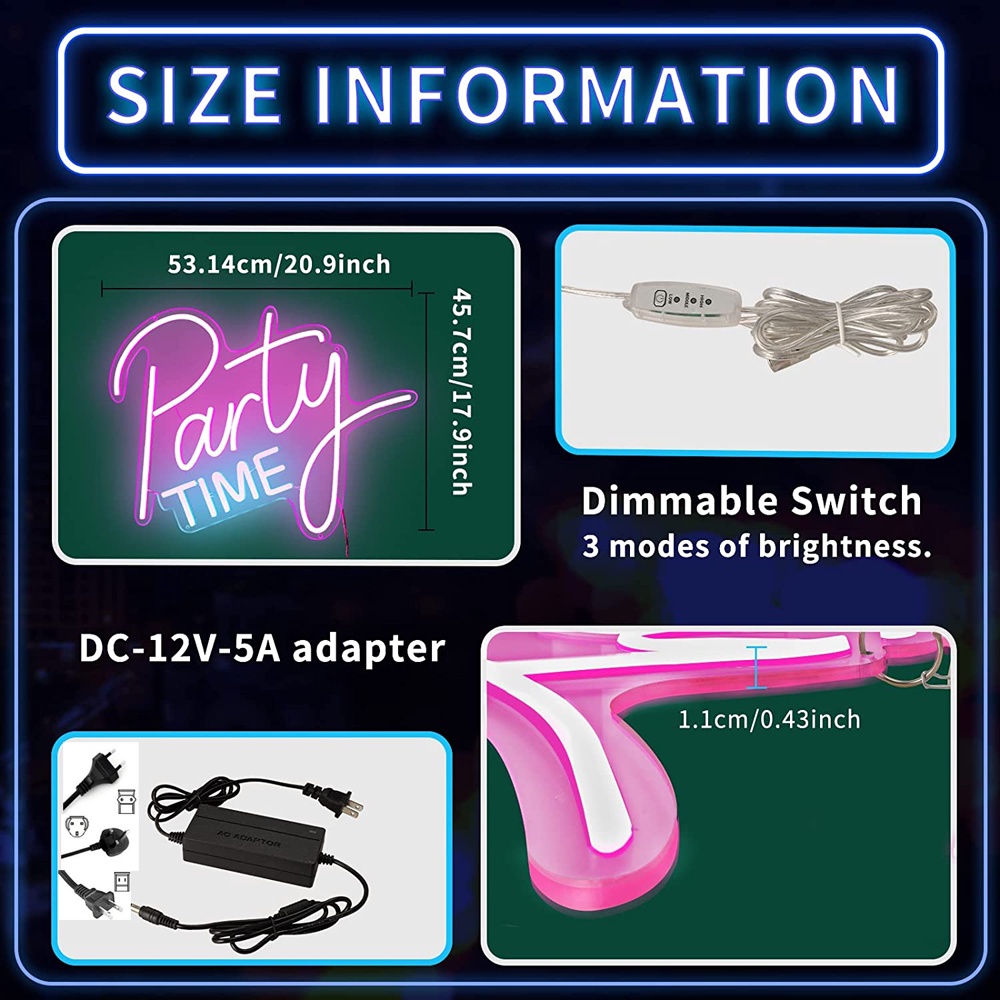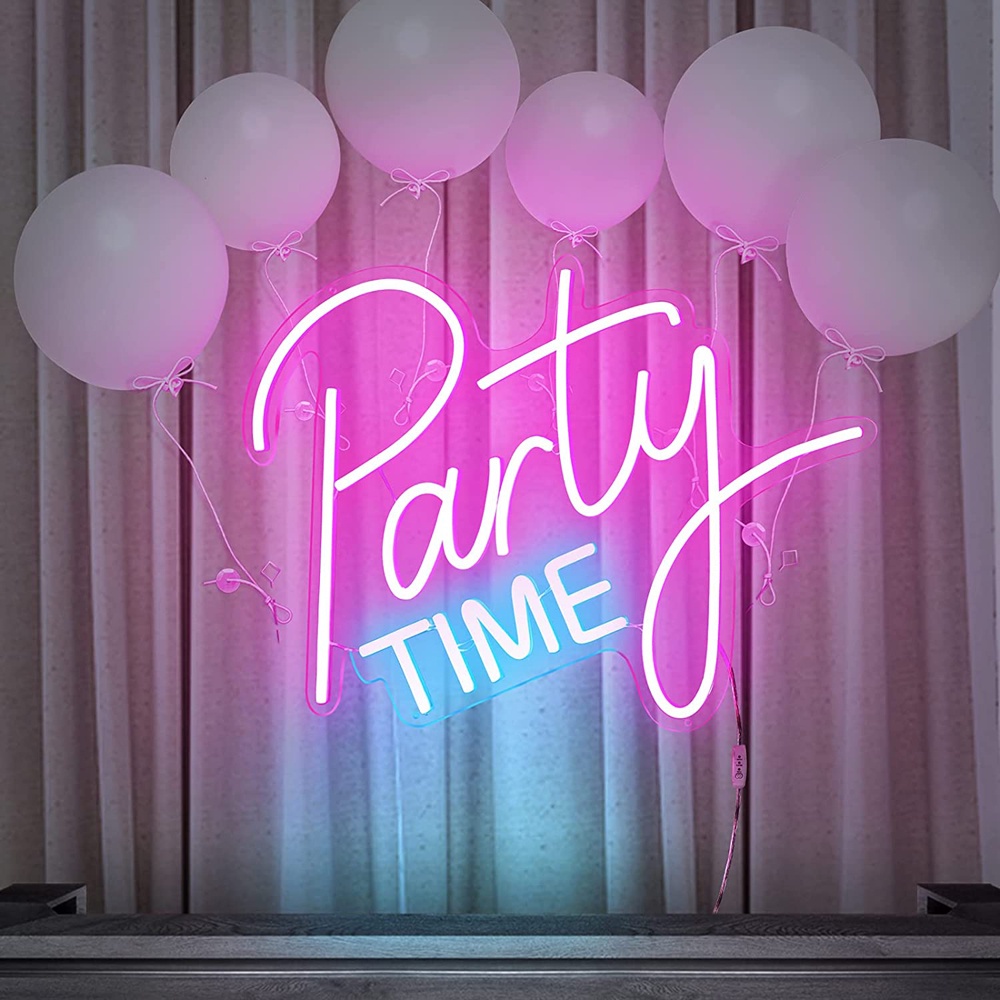 Party Time Neon Sign,LED Neon Light Sign,with Dimmable Switch,For Birthdays, Weddings, Parties of Various Festivals, Indoor and Outdoor Decoration