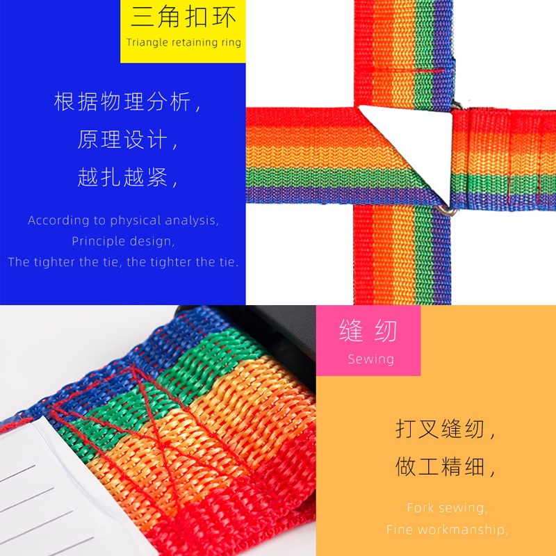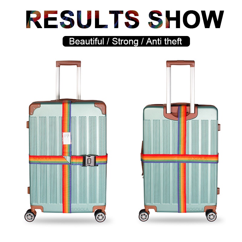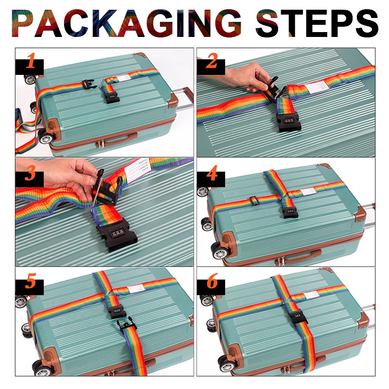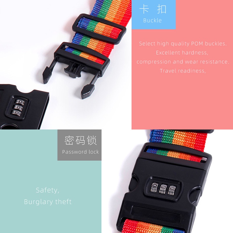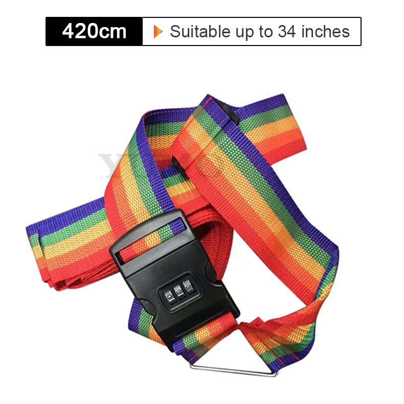 Password lock 4.2M Rainbow Luggage Strap Cross Belt Adjustable Travel Buckle Baggage Belts with lock