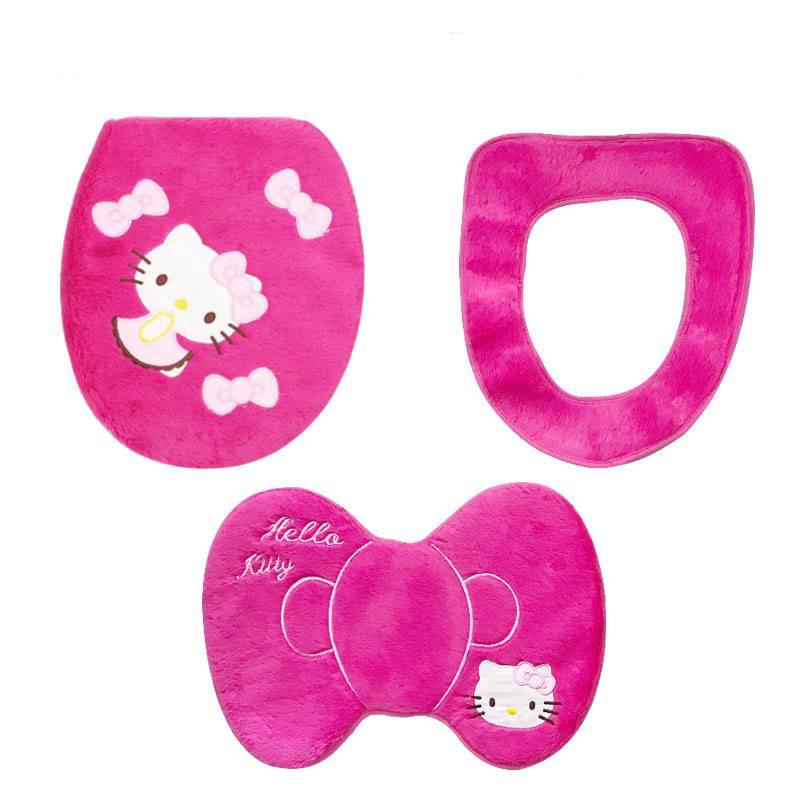 Paste Hello Kitty toilet seat potty bathroom plus thick velvet three-piece set of generic cartoon