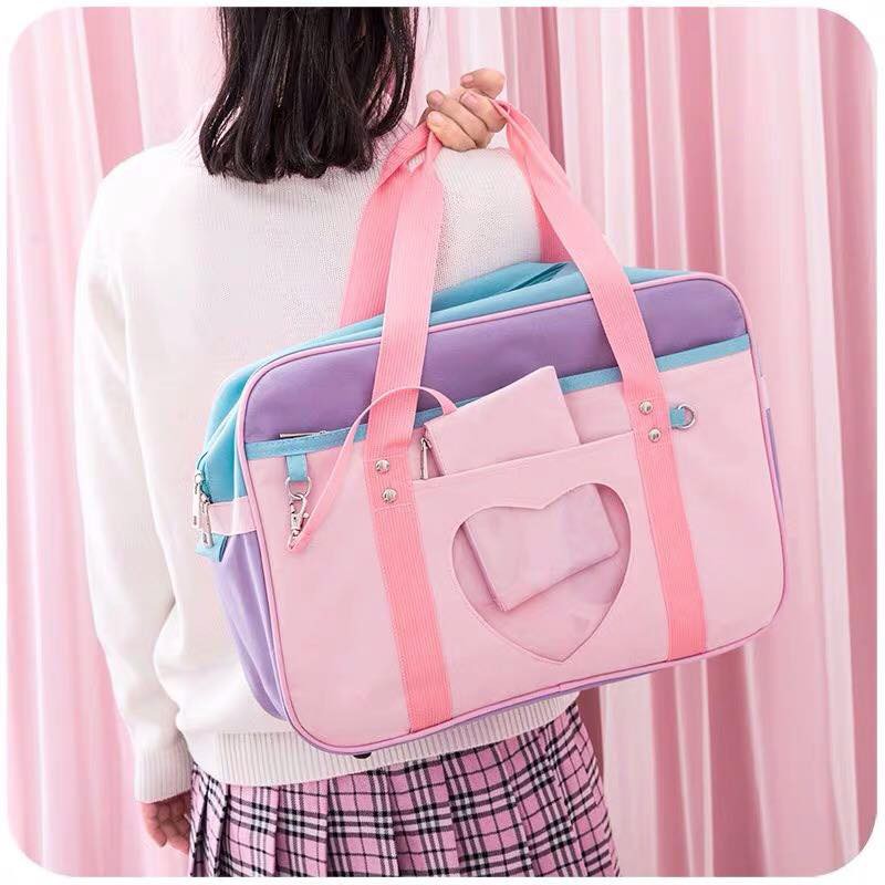Pastel Heart Duffle School Laptop Bag Travel Multipurpose