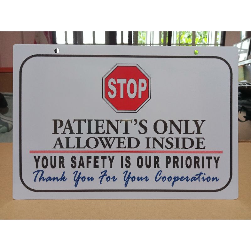 Patient's Only Allowed Inside Hard PVC Signage 7.8x11 inches