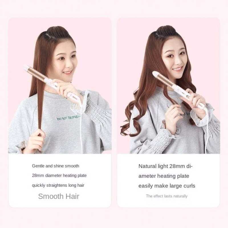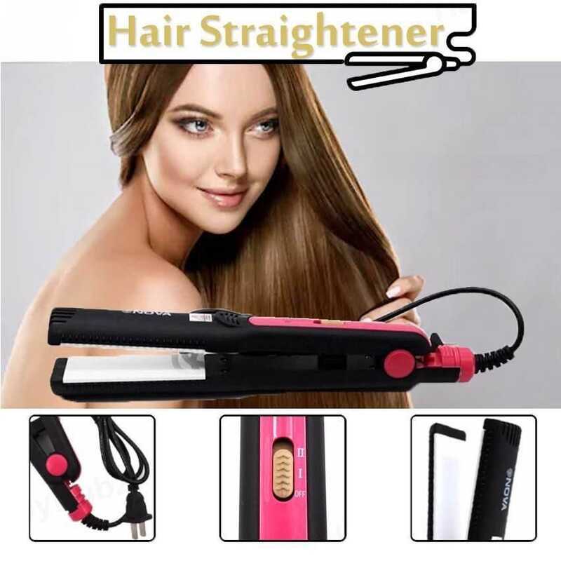Portable Hair Curl Straightener Flat Iron Perm Splint With Cartoon Case Straight F