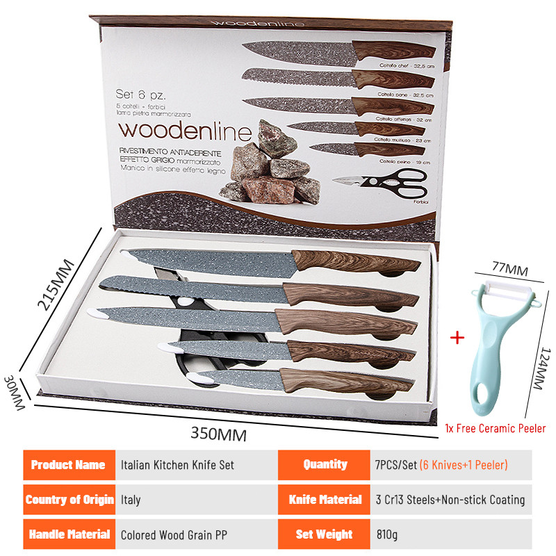 【Freebies】Original Italy Knife Set 7PCS Kitchen Knife Set Stainless Steel Chef Knife Knife Scissor