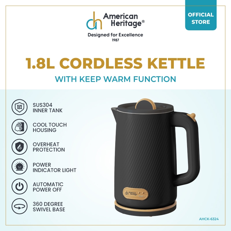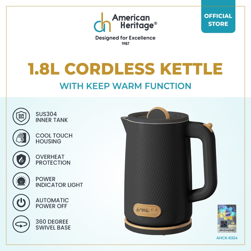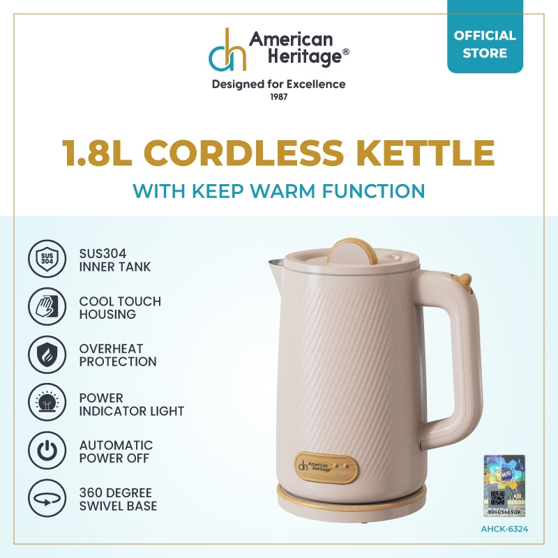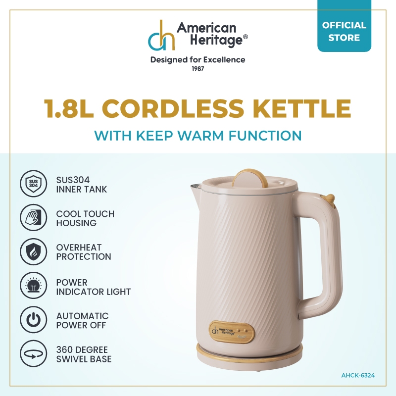 American Heritage 1.8L 304 Stainless Steel Cordless Kettle With Keep Warm Function AHCK-6324