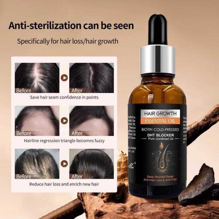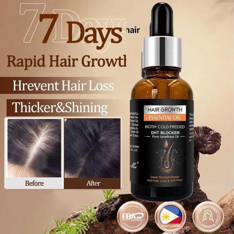 Hair Growth Essential Oil Biotin Cold-Pressed DHT Blocker Anti-Hair Loss 30Ml | 100% Safe To Us 64E