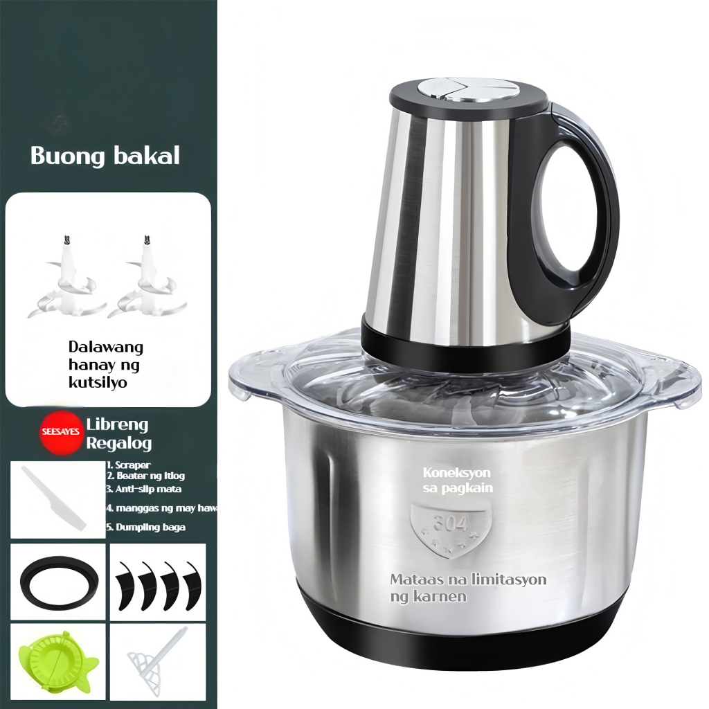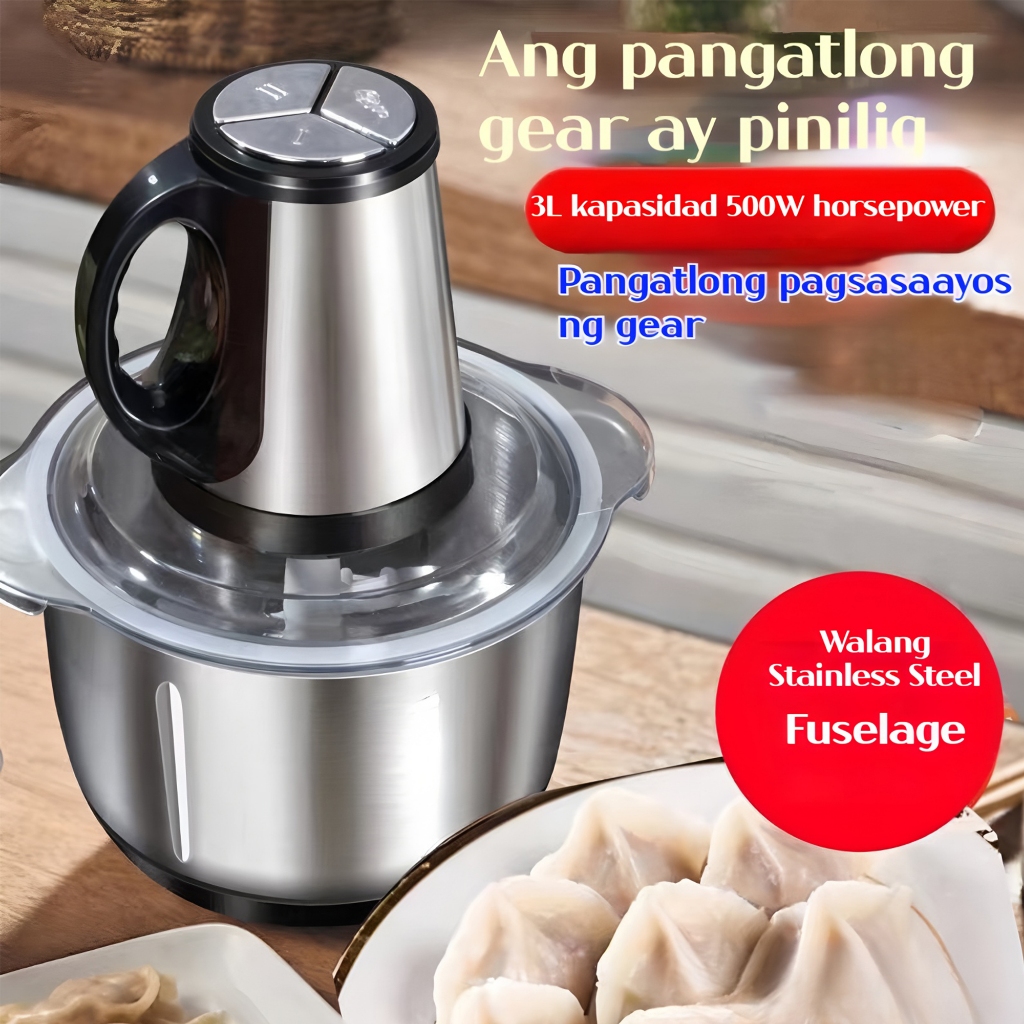 600 W Stainless Steel Food Processor 3 L Chopper, Meat Grinder, Vegetable Fruit Mixer, 5-Key Control