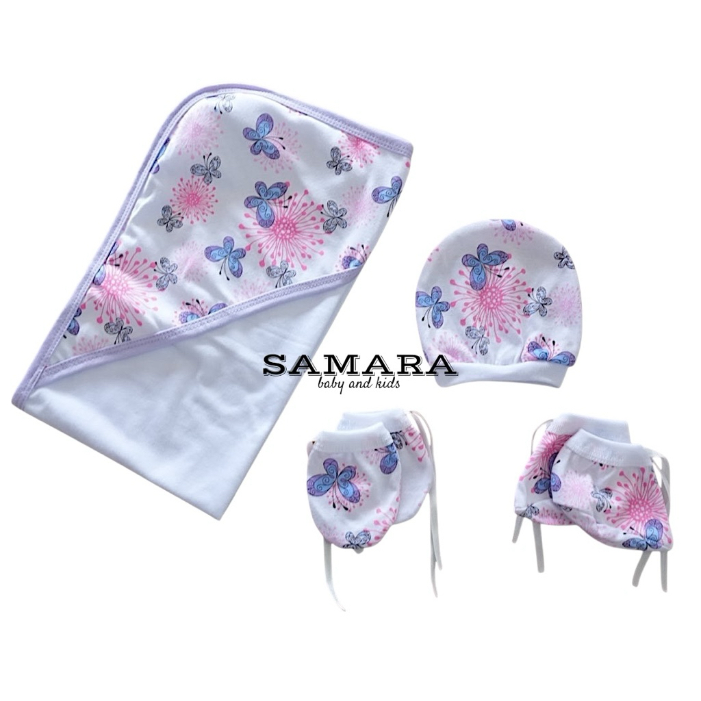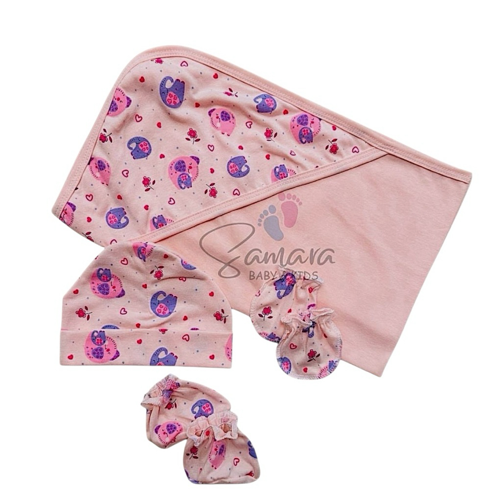 Samara 4in1 Newborn Essentials Set | Blanket, Mittens,Booties & Bonnet | Soft Baby Gift Set | Cotton