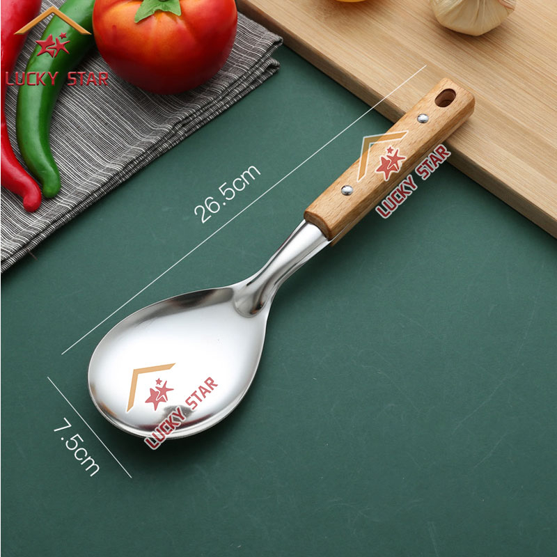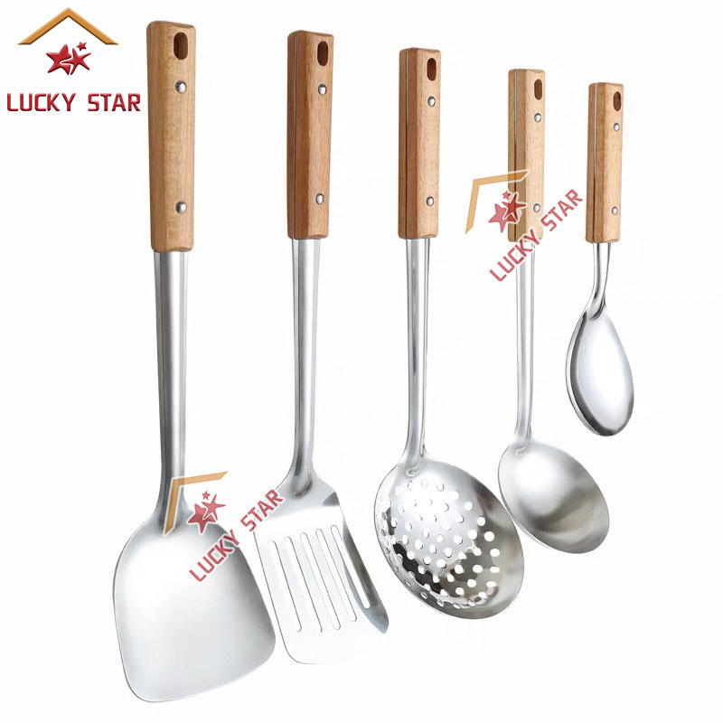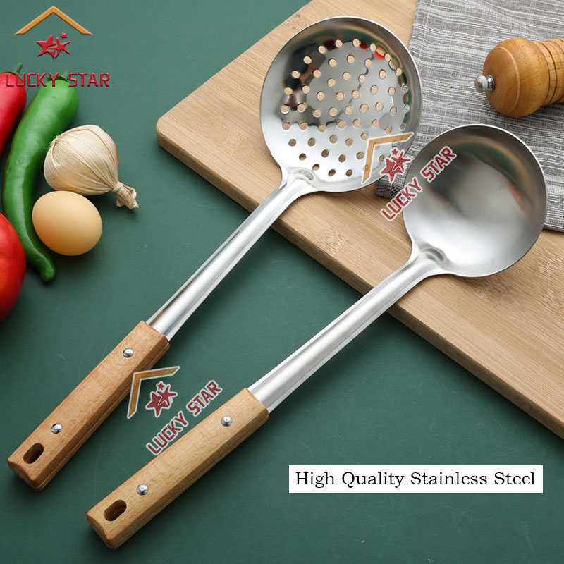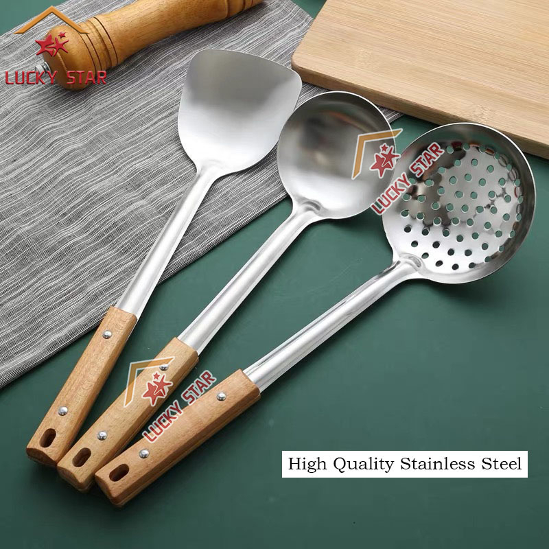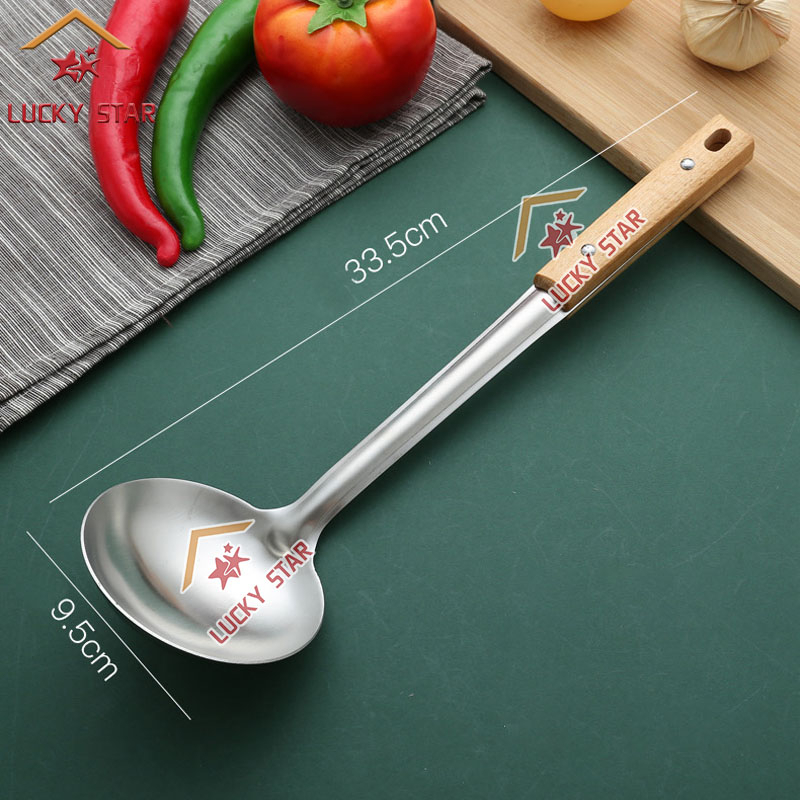 High Quality Cooking Utensils Stainless Steel Wooden Handle Sianse Soup Ladle Rice Spoon Spatulas