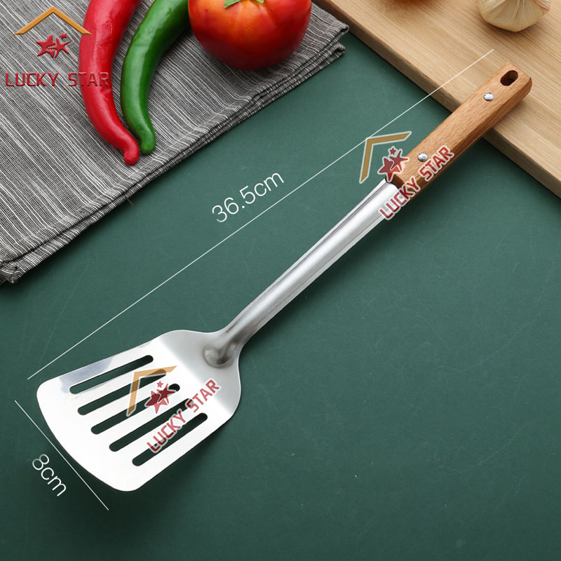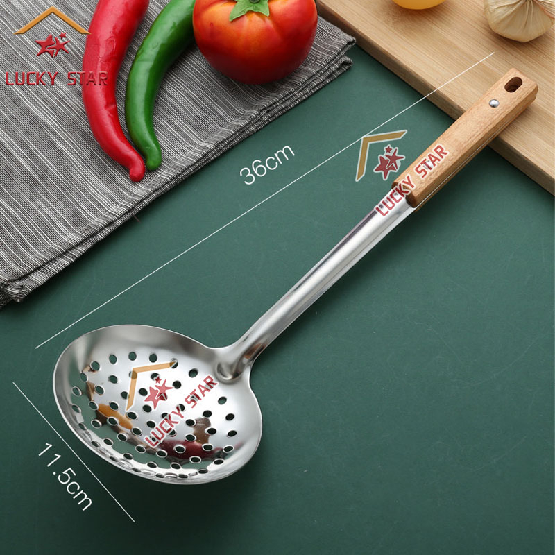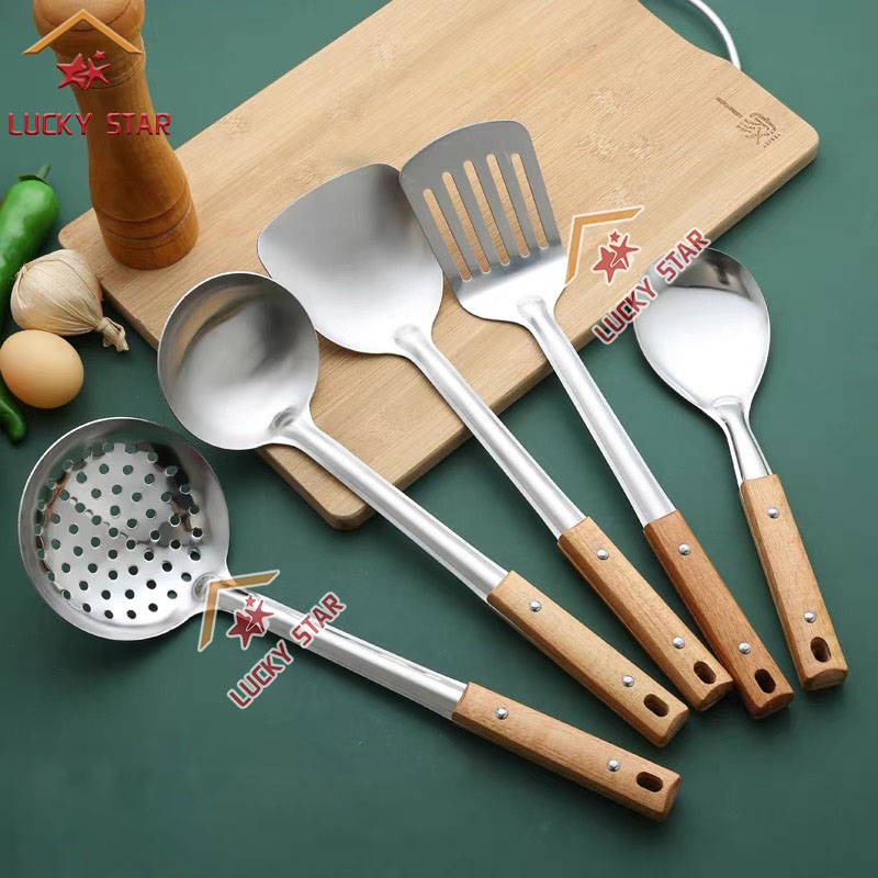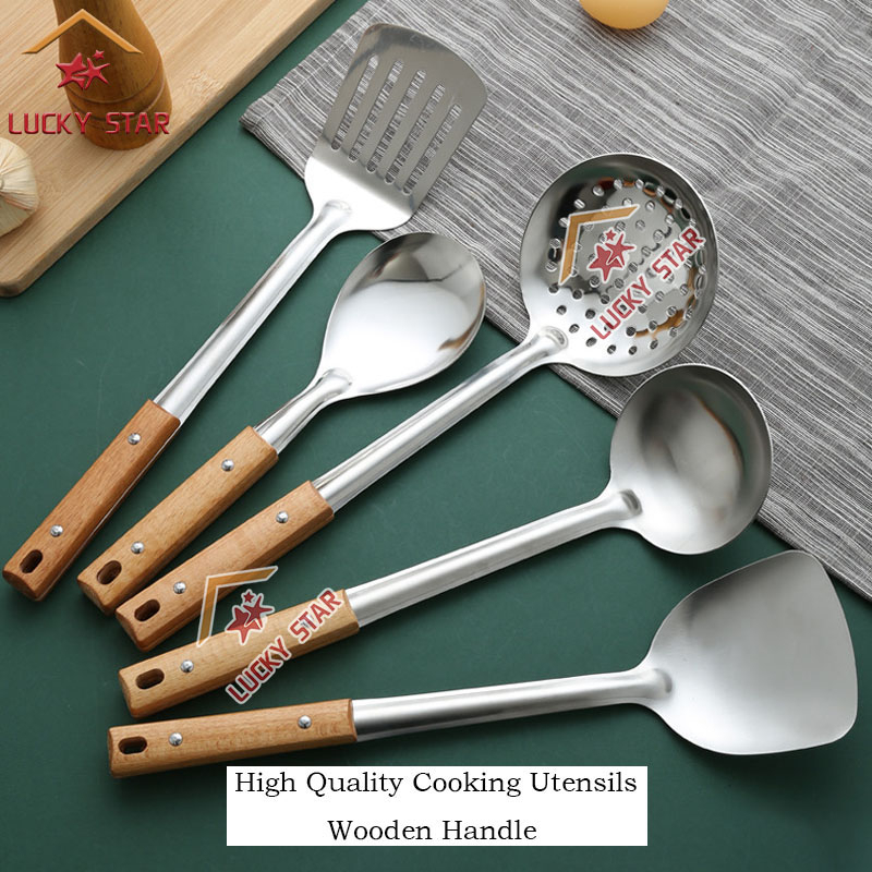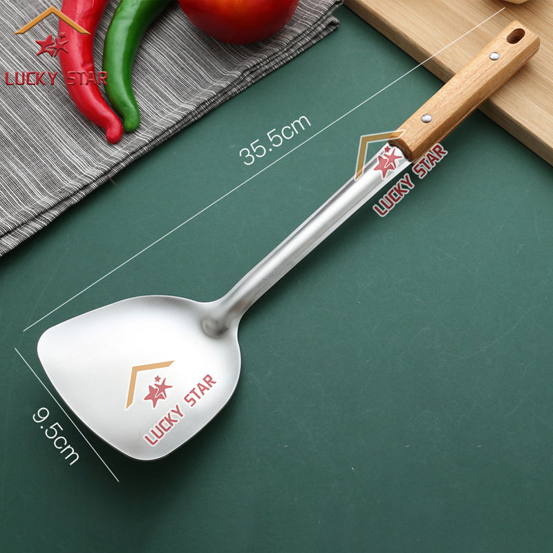 High Quality Cooking Utensils Stainless Steel Wooden Handle Sianse Soup Ladle Rice Spoon Spatulas