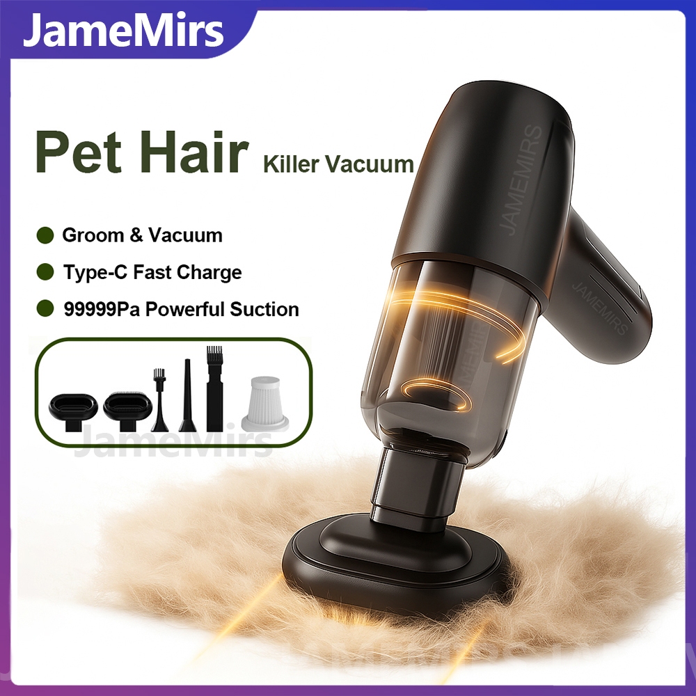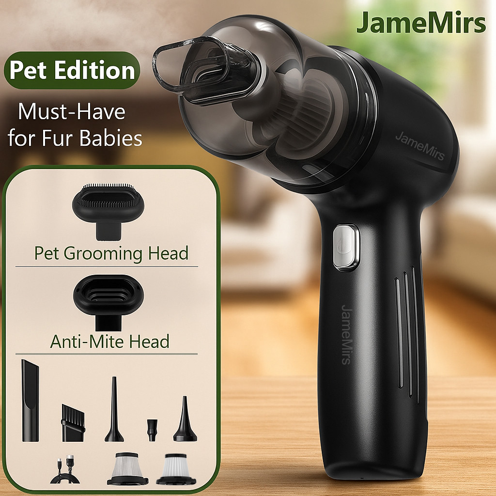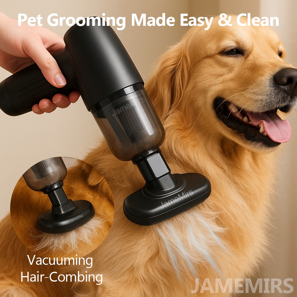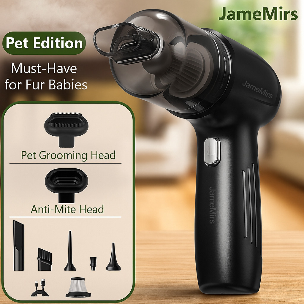 JameMirs Pet Hair Vacuum Cleaner | Groom & Vacuum | Mite Removal Head | Dog & Cat Shedding Cleaner | Powerful Suction | Cordless Home & Car Cleaning