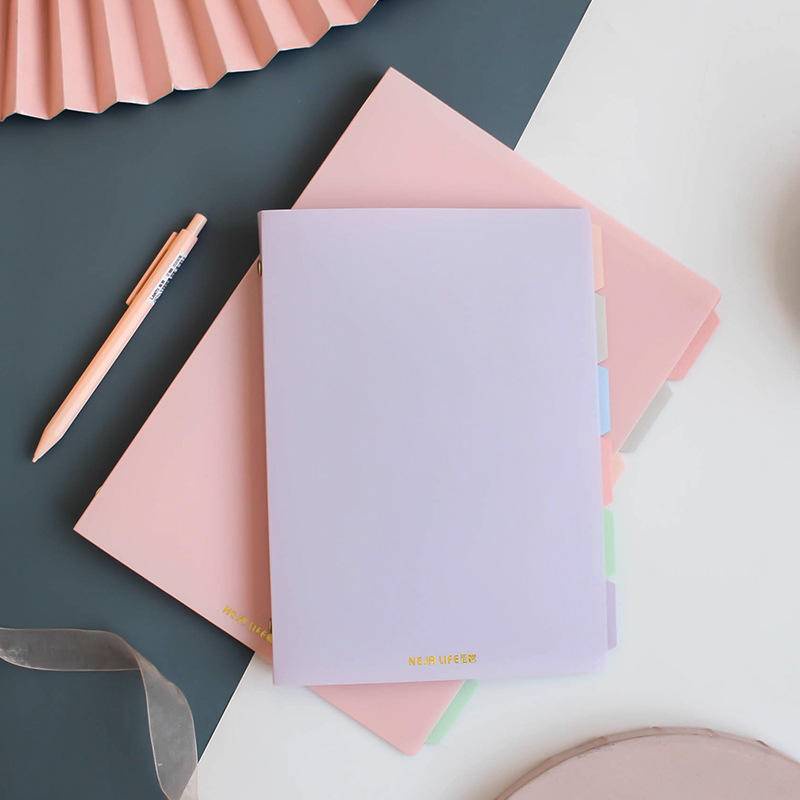 A5/B5 Pastel Color/Morandi Series Loose-leaf Binder with 20 Sheets Papers and 6-Color Separators