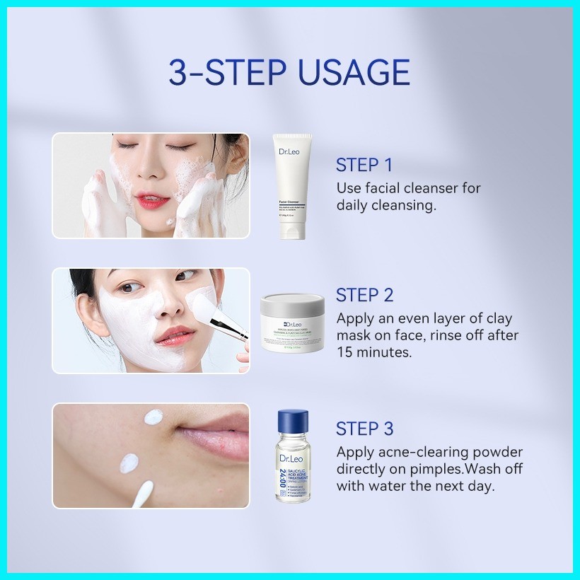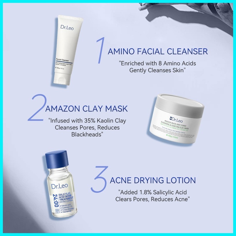 [Dr.Leo 3 In 1 Deep Cleasing Set]Treatment For Oily Skin Clogged Pores And Acne Polyamino Acid Puri