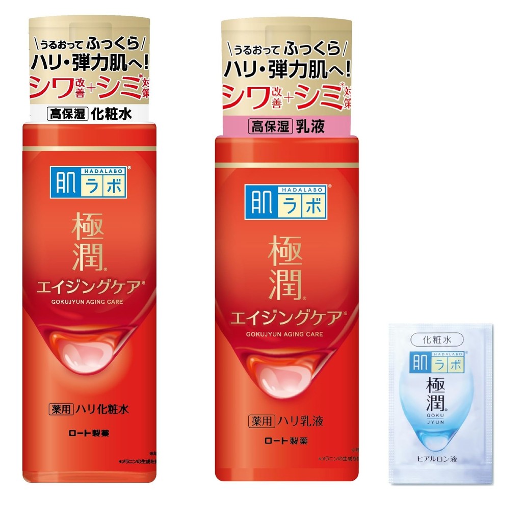 Hada Labo Gokujun Anti-Aging Skincare Set - Includes Toner, Gel, and Emulsion (Fragrance-Free)- Direct from Japan