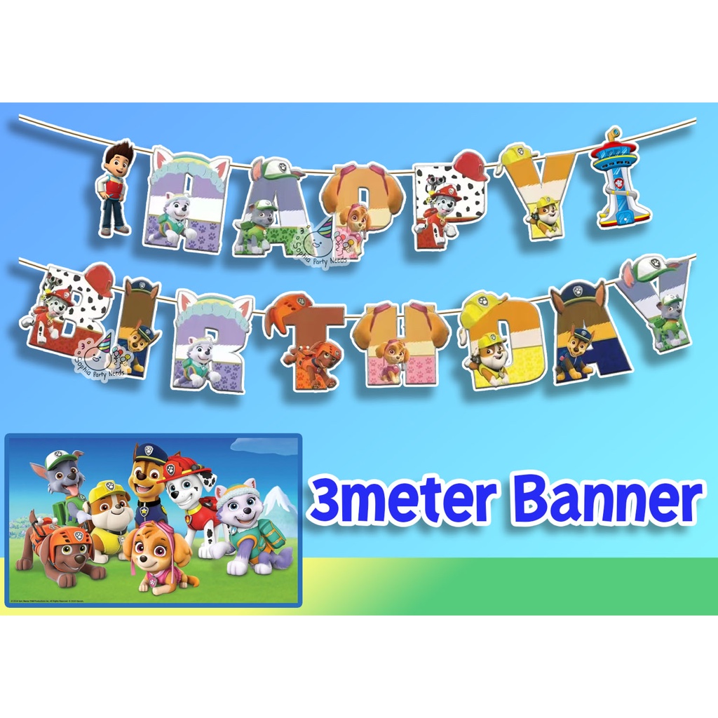 Paw Patrol Happy Birthday Banner with Complete Cast Chase Marshall Skye Rubbles