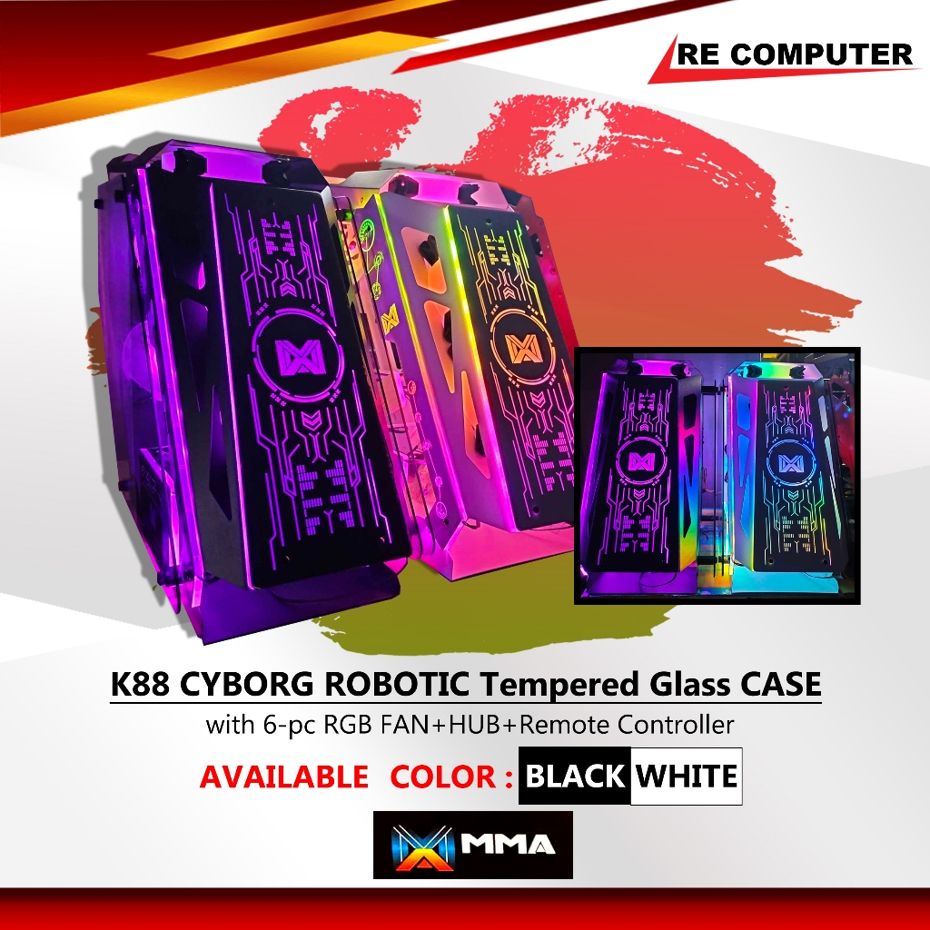 Pc Case Mma k88 tempered glass gaming case Black /White with 6rgb fans with Same Day Delivery