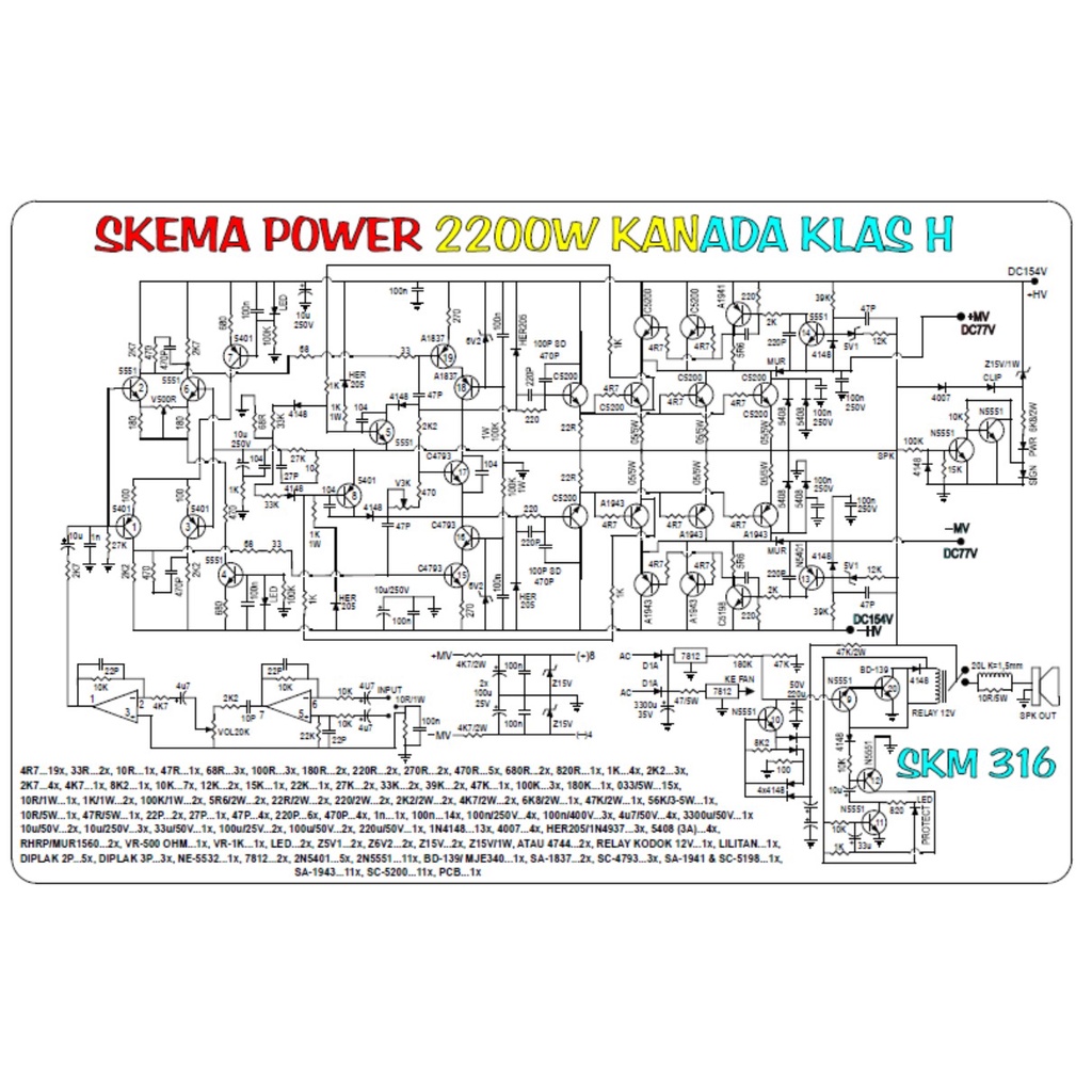 PCB Power Amplifier CLASS H 2200W Mono Type 316