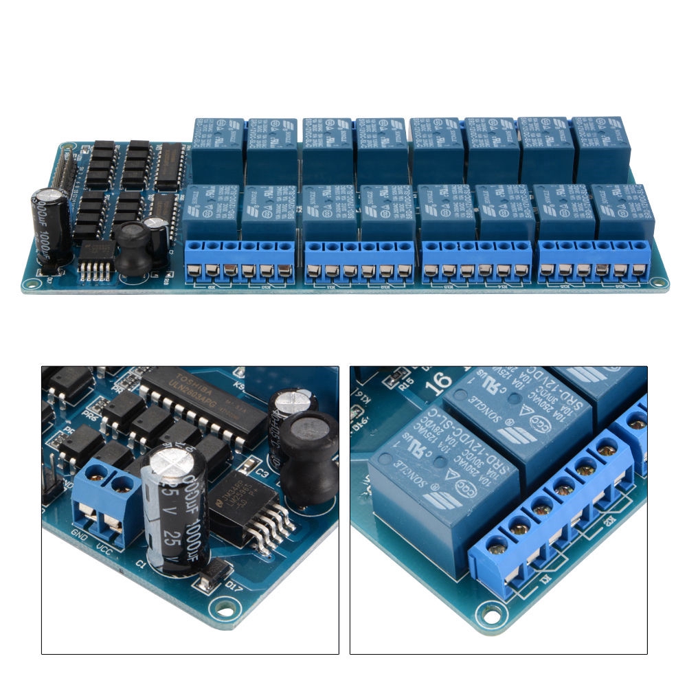 Pcbfun 16 Channel Dc 5V/12V Relay Shield Module With Optocoupler For Arduino