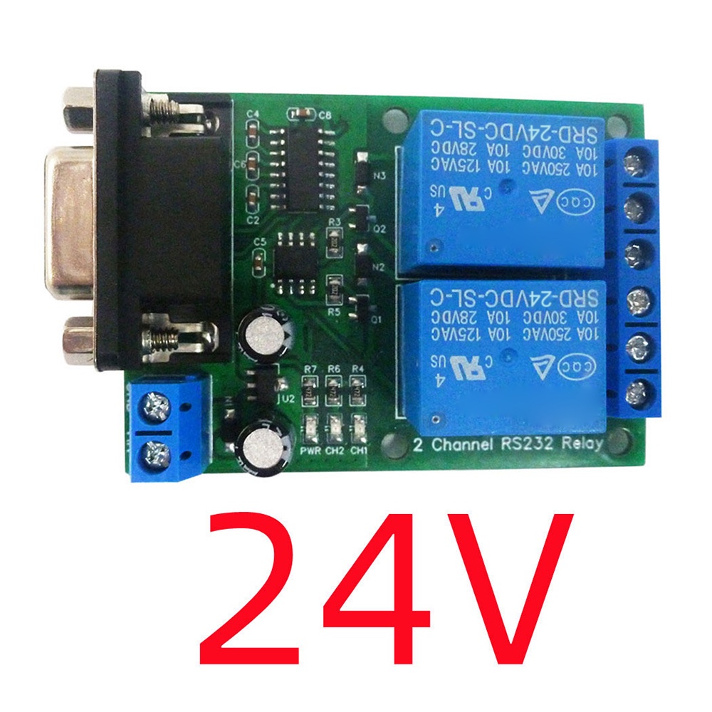 Pcbfun 2ch RS232 Relay Board DC 12V 24V Serial Port Switch Module for PLC Motor LED PTZ Industrial Control Equipment