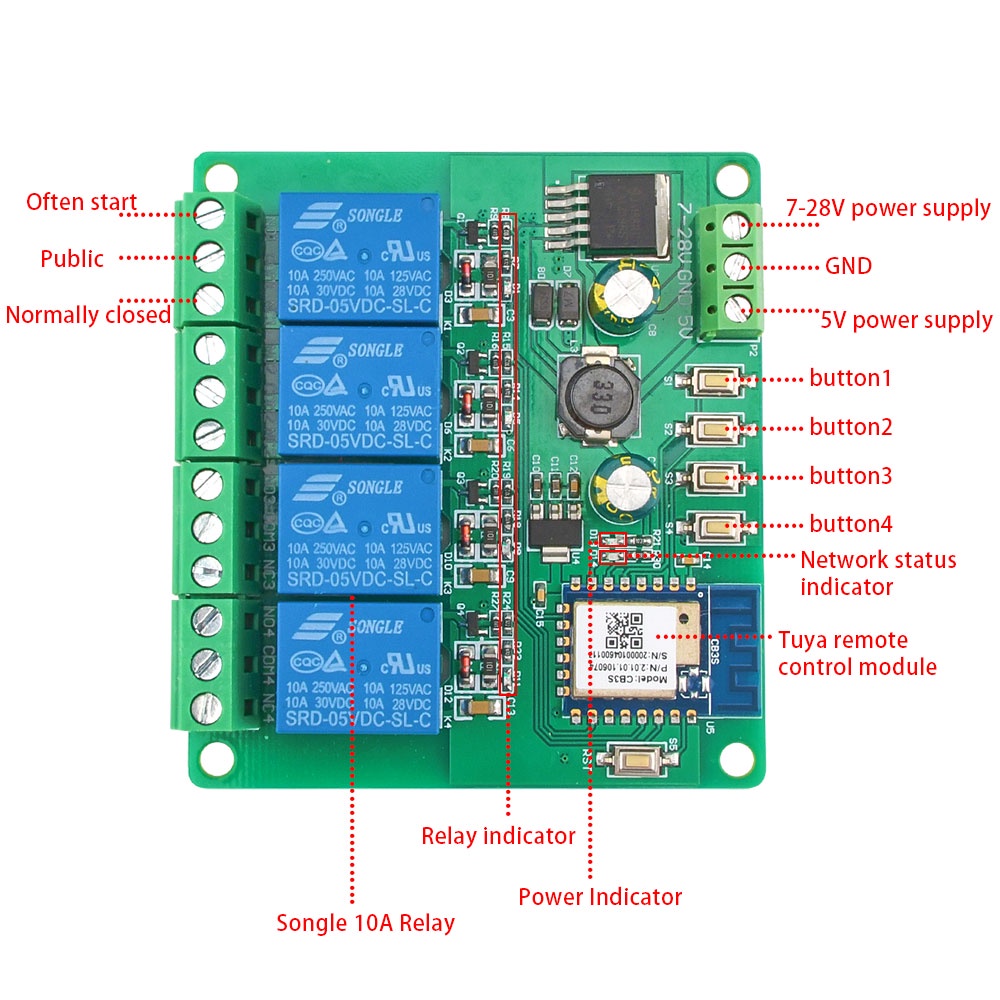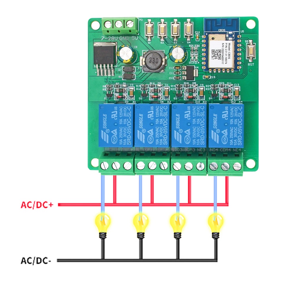 Pcbfun 4 Channel AC 90-250V Smart WiFi Switch Relay Module Mobile APP Remote Control