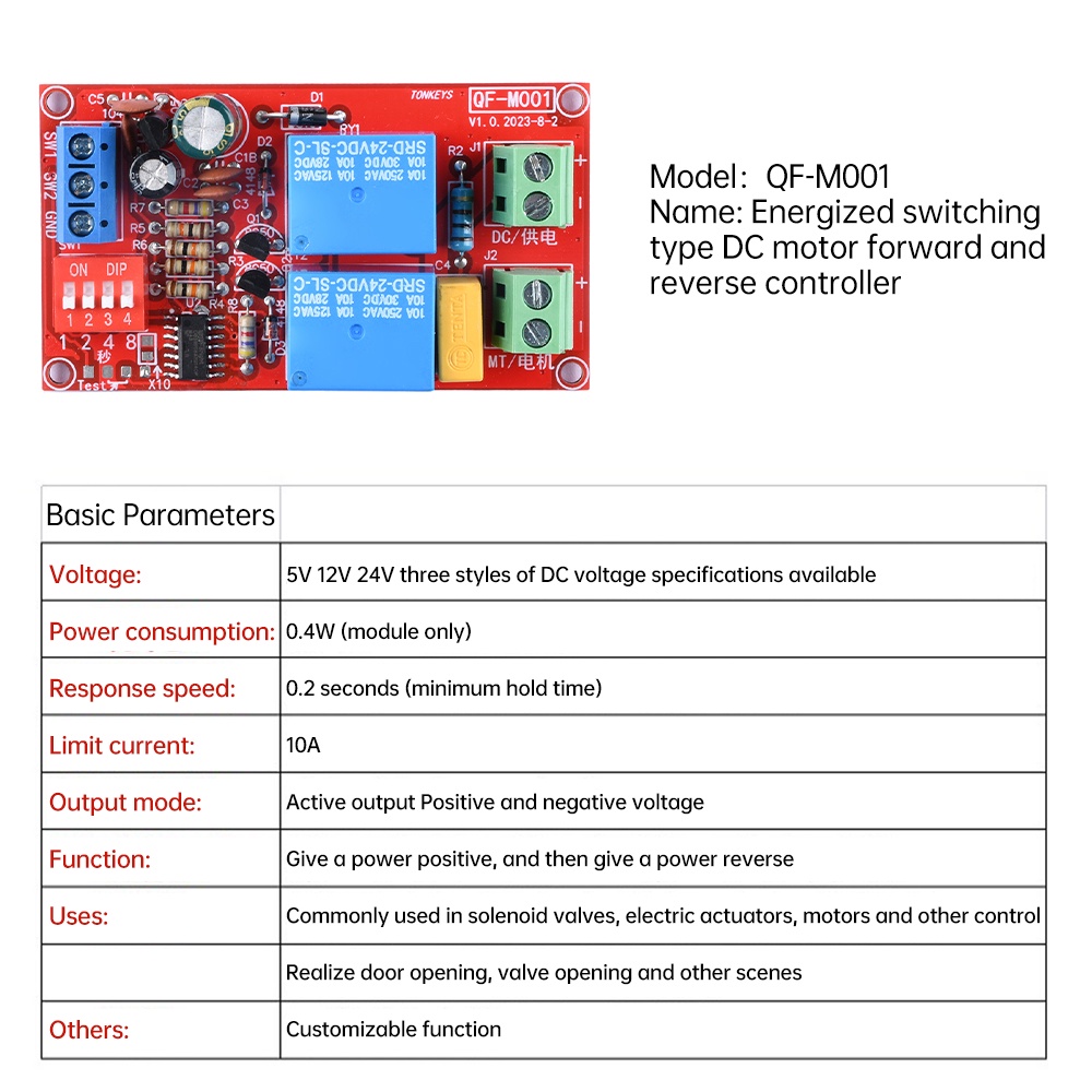 Pcbfun 5V/12V/24V 10A Switching DC Motor Forward and Reverse Relay Module