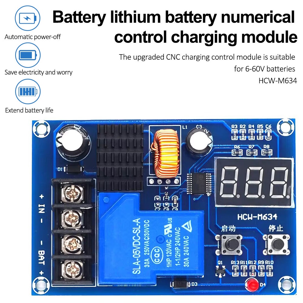 Pcbfun 6-60v Battery Charge Control Module Digital Overcharge Protection Switch Module