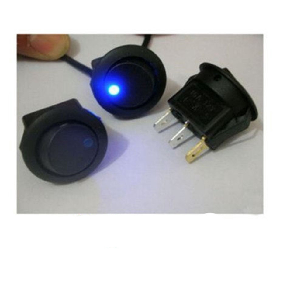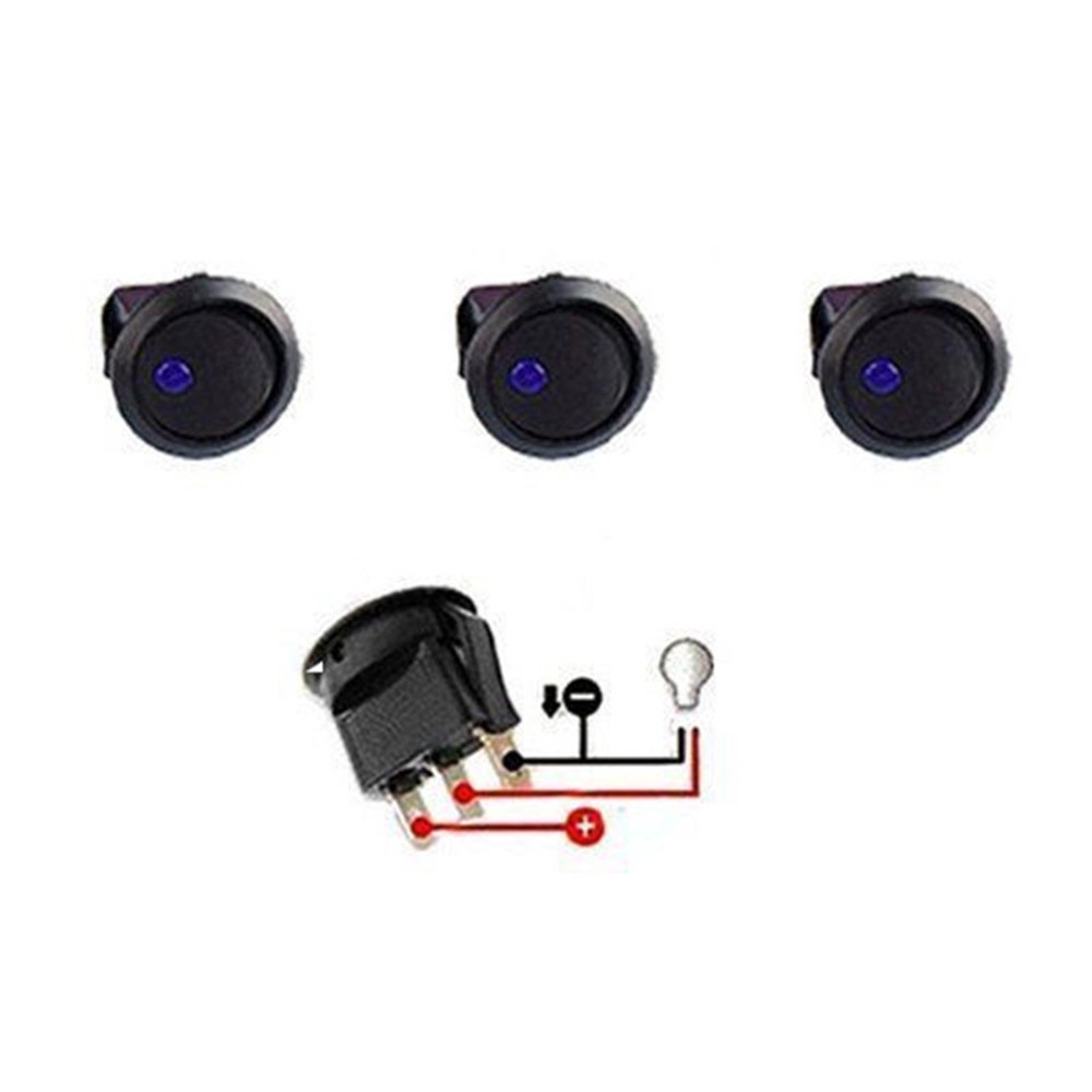 Pcbfun Ac 125V 250V 3 Pins Blue Car Round Dot Led Light Rocker Toggle Switch 5 Pcs.