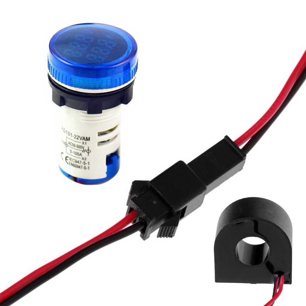 Pcbfun Ac 50-500V 0-100A Roundness 22Mm Led Digital Voltmeter Ammeter Voltage Current Meter