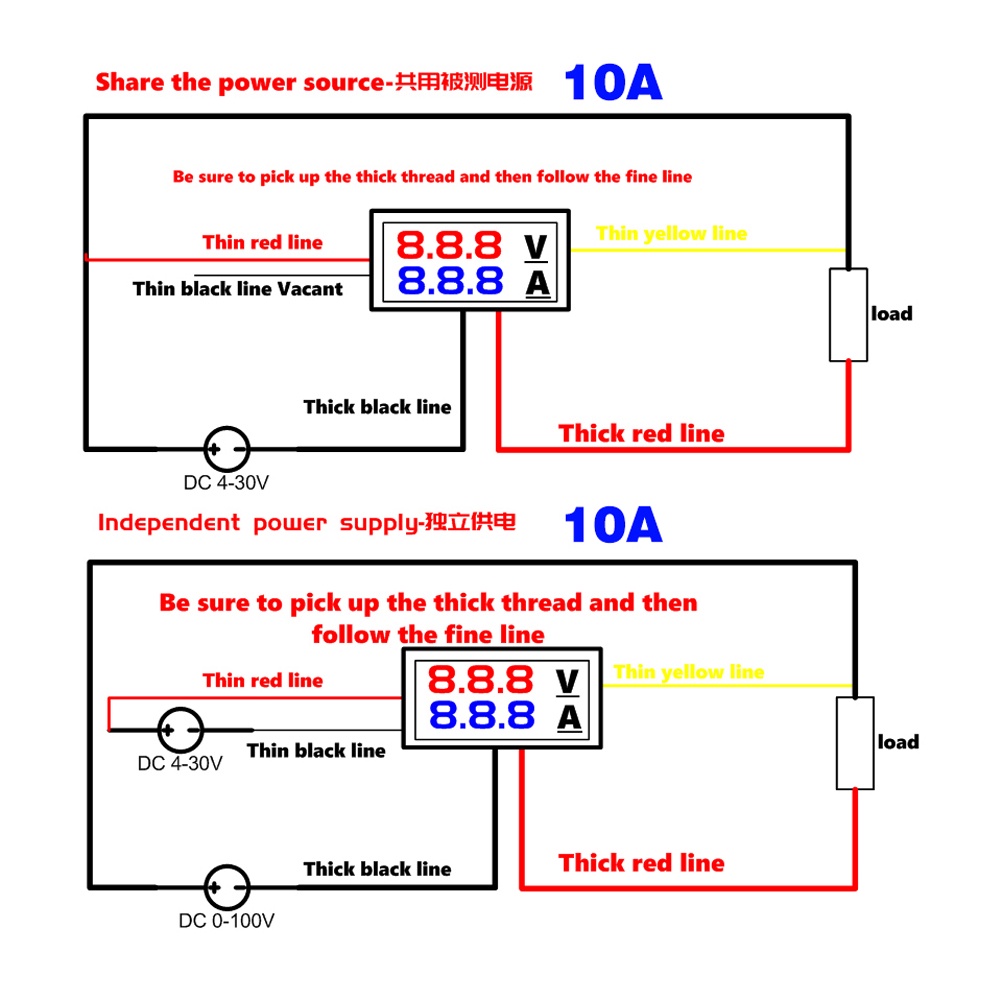 Pcbfun DC/100V/10A Double LED Digital Display Voltmeter Ammeter